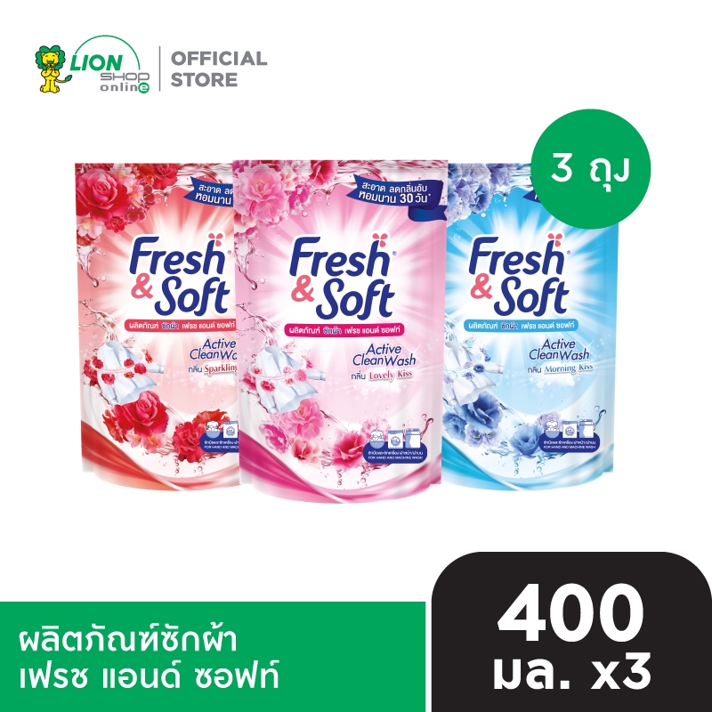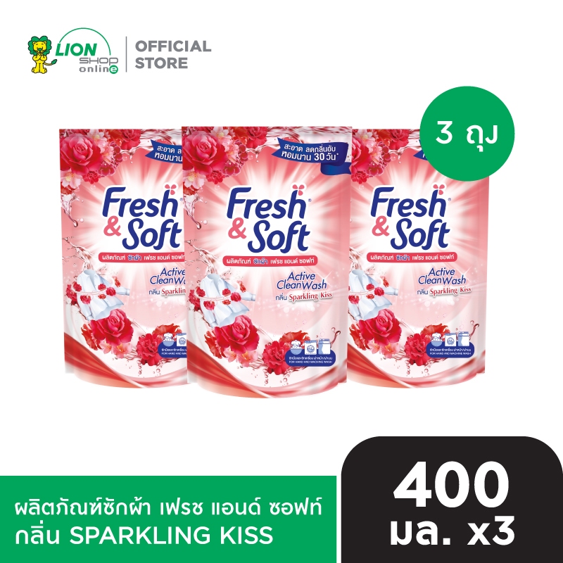 Fresh & Soft ผลิตภัณฑ์ซักผ้า เฟรช แอนด์ ซอฟท์ กลิ่น Sparkling Kiss (สีแดง) ชนิดเติม 400 ml แพ็ค 3 ถุง