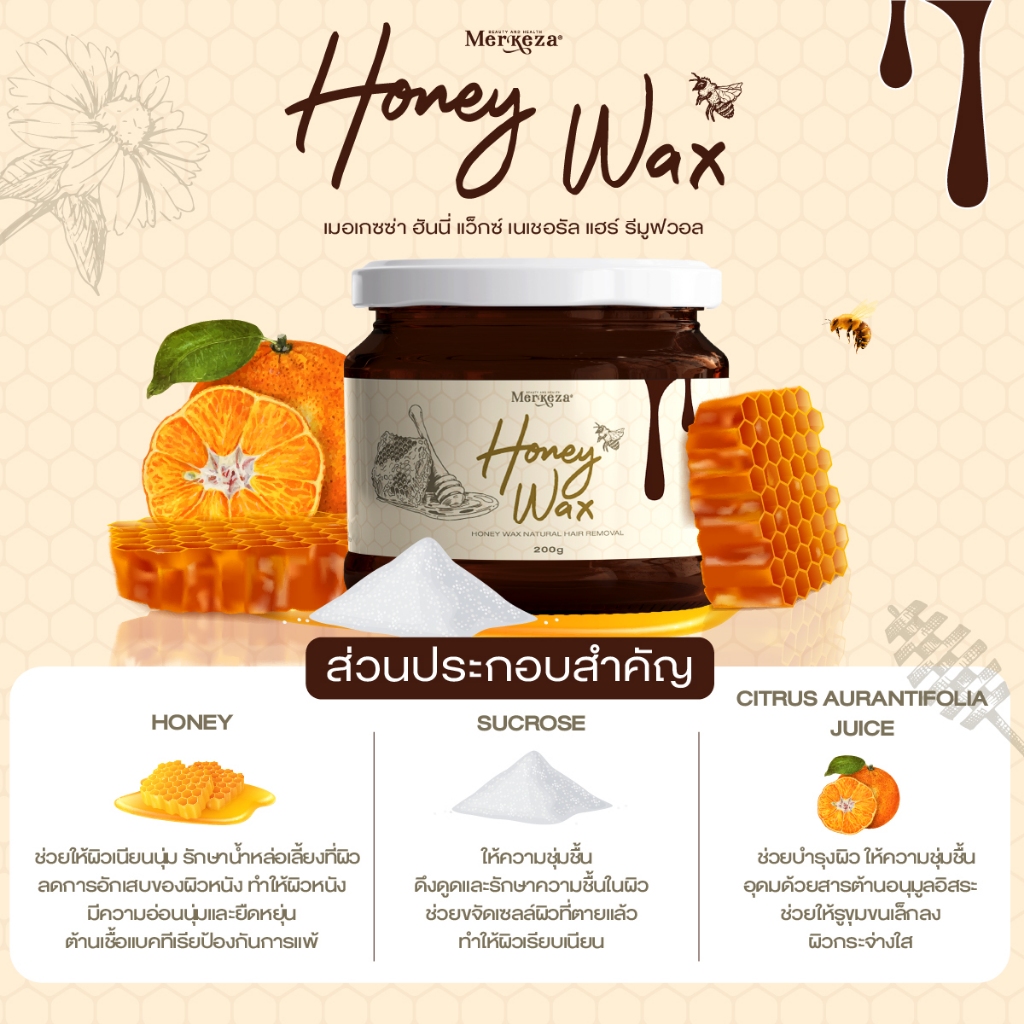 Merkeza Honey Wax เมอเกซซ่า ฮันนี่ แว๊กซ์ น้ำผึ้ง แว๊ก ขนแขน ขา รักแร้ ผิวเนียน ขนใหม่อ่อนโยน ไม่เป็นตอ 200g.