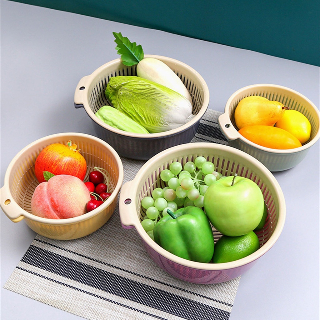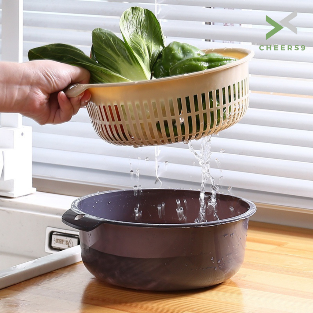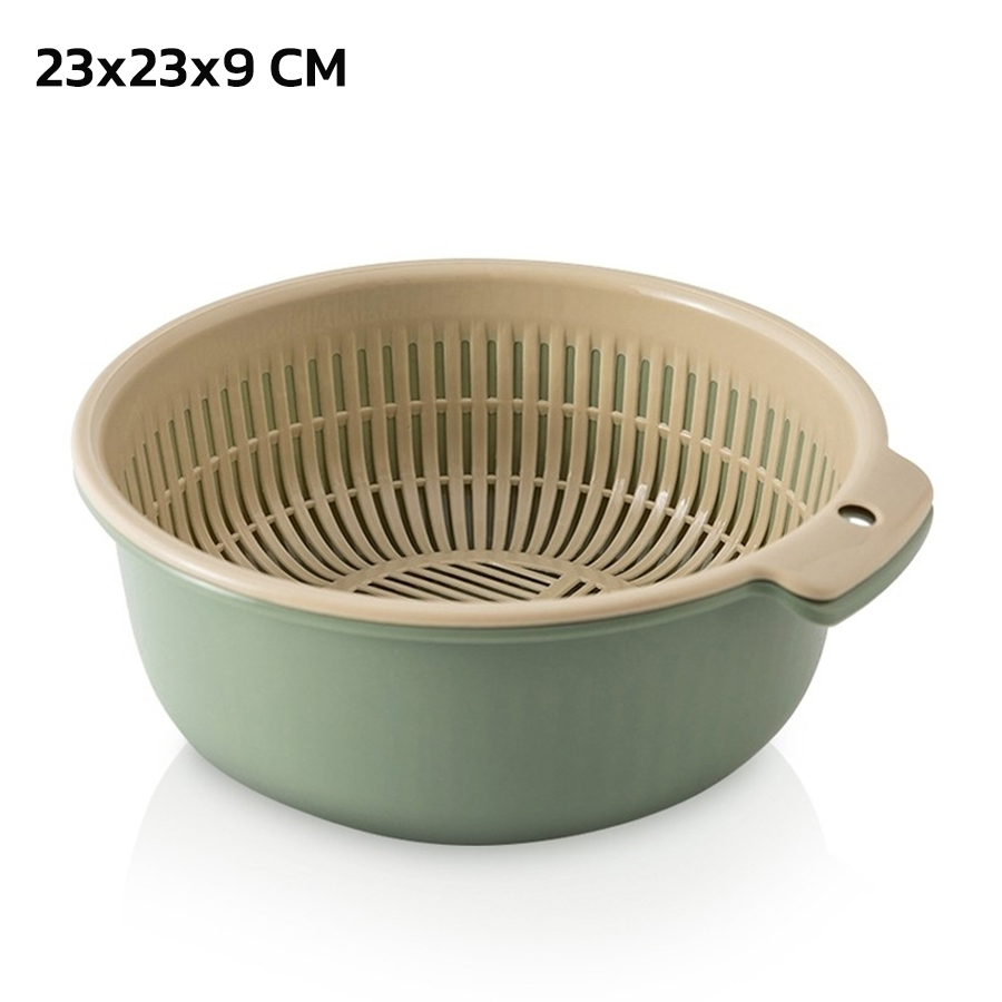 ตะกร้าล้างผักผลไม้ ชามล้างผลไม้ 2 ชั้น มีรูระบายน้ำ กะละมัง ตะกร้าล้างผัก cheers9