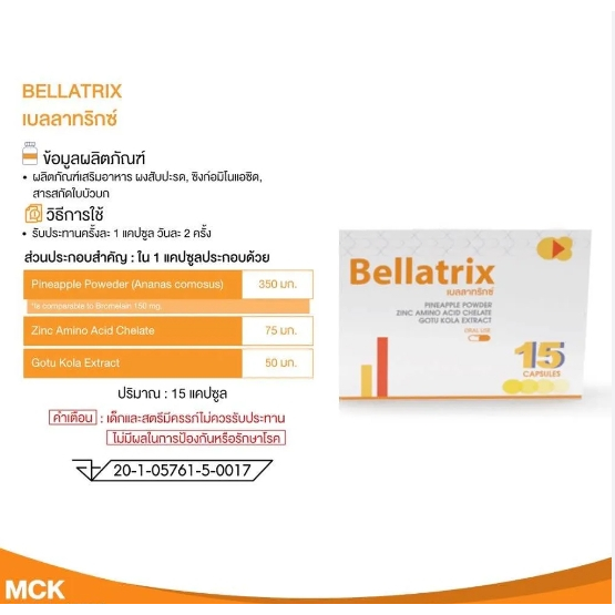Bellatrix เบลลาทริกซ์ 15 แคปซูล/BELLATRIX 20กรัม เบลลาทริกซ์ วิตามิน ศัลยกรรม