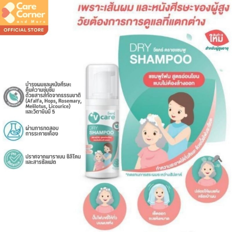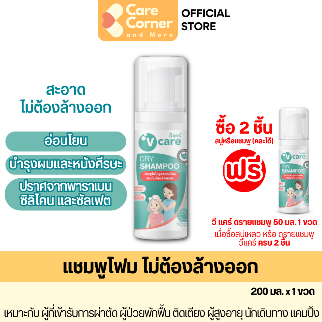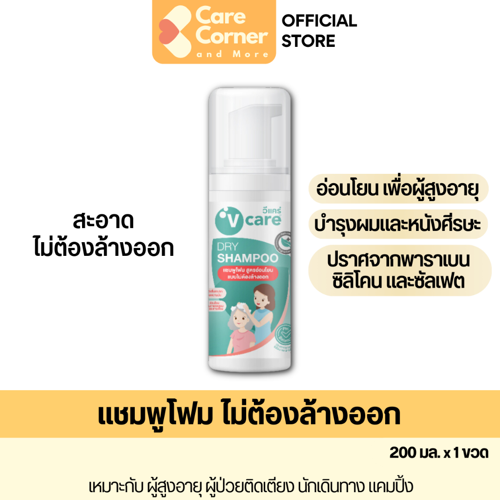 V Care วีแคร์ แชมพูโฟม ไม่ต้องล้างออก ดรายแชมพู ยาสระผม อ่อนโยน แชมพูผู้ป่วยติดเตียง ของใช้ผู้สูงอายุ Dry Shampoo