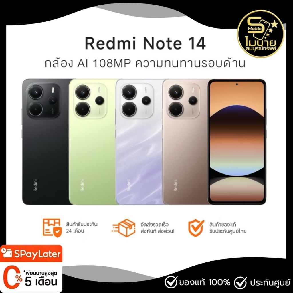 Redmi Note 14 (8+256)| กล้อง AI 108MP | 33W เทอร์โบชาร์จ พร้อมแบตเตอรี่ 5500mAh ประกันศูนย์ 15เดือน