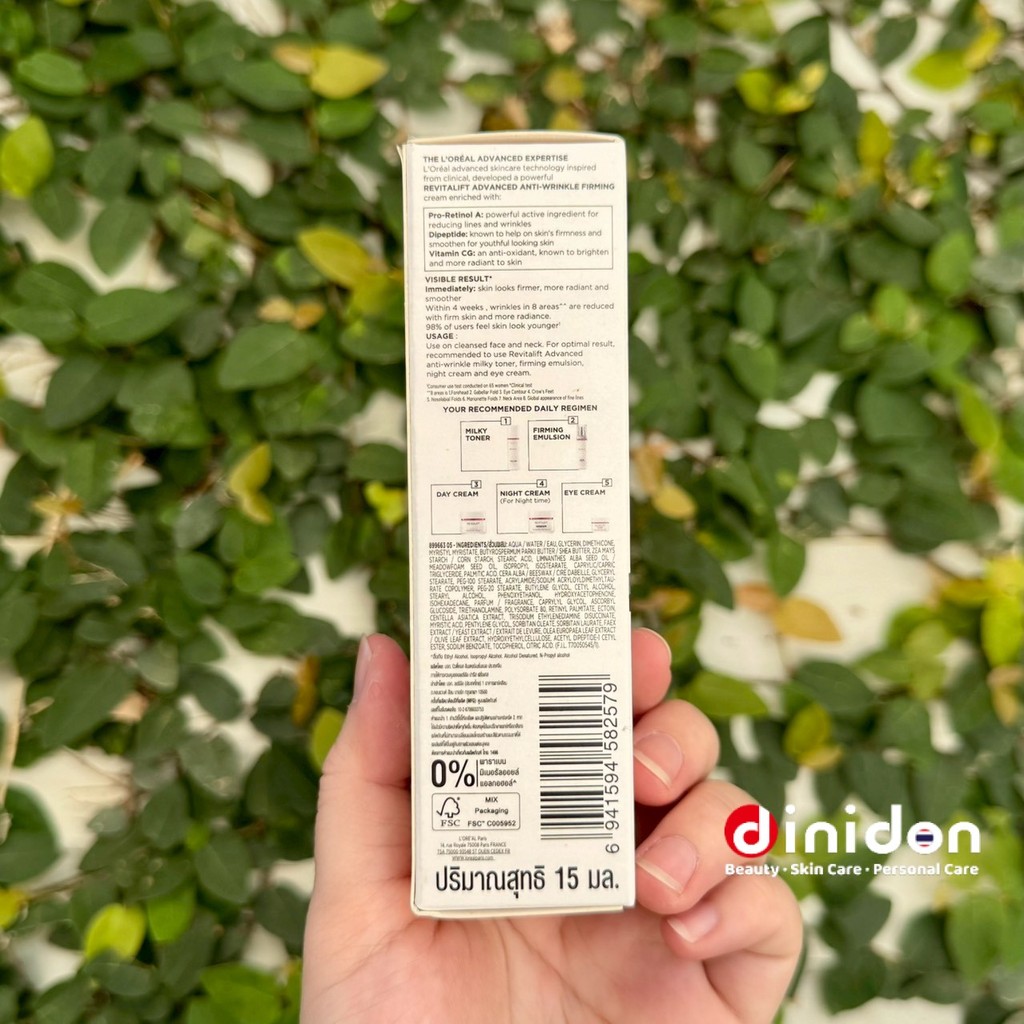 ((dinidon Shop)) L'Oreal Paris Revitalift Advanced Anti-Wrinkle Firming Facial Cream 15 Ml. แอนตี้-ริงเคิล เฟเชียล ครีม
