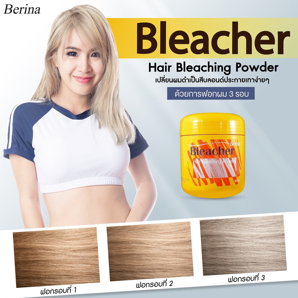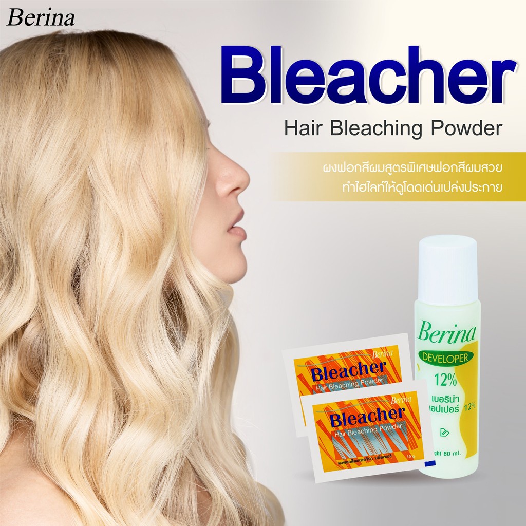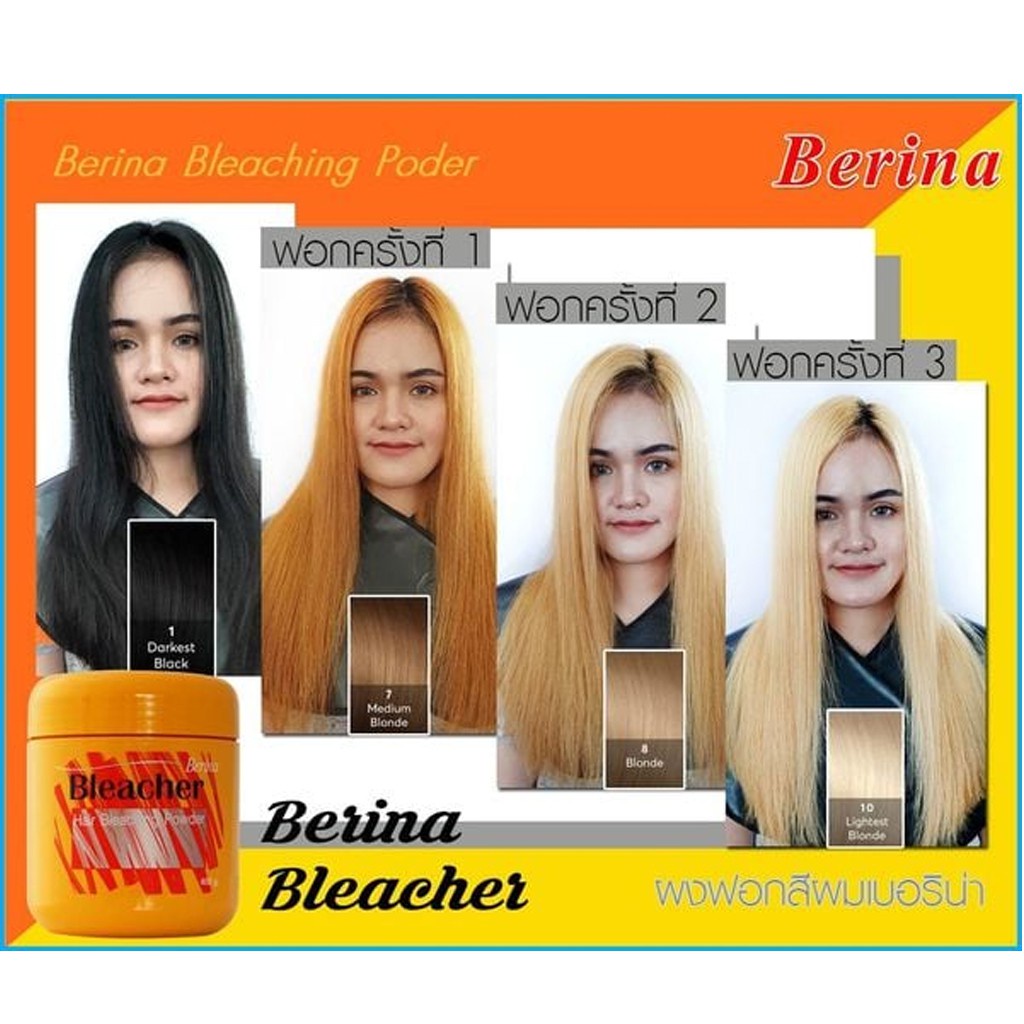 Berina hair bleaching powder ผงฟอก ผงกัด สีสว่าง เปลี่ยนสีผม เบอริน่า บลีชเชอร์ 1 ชุด