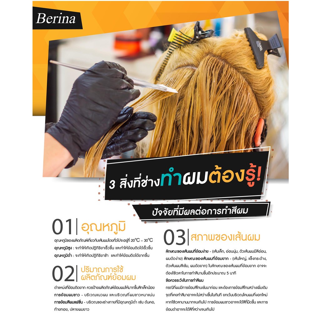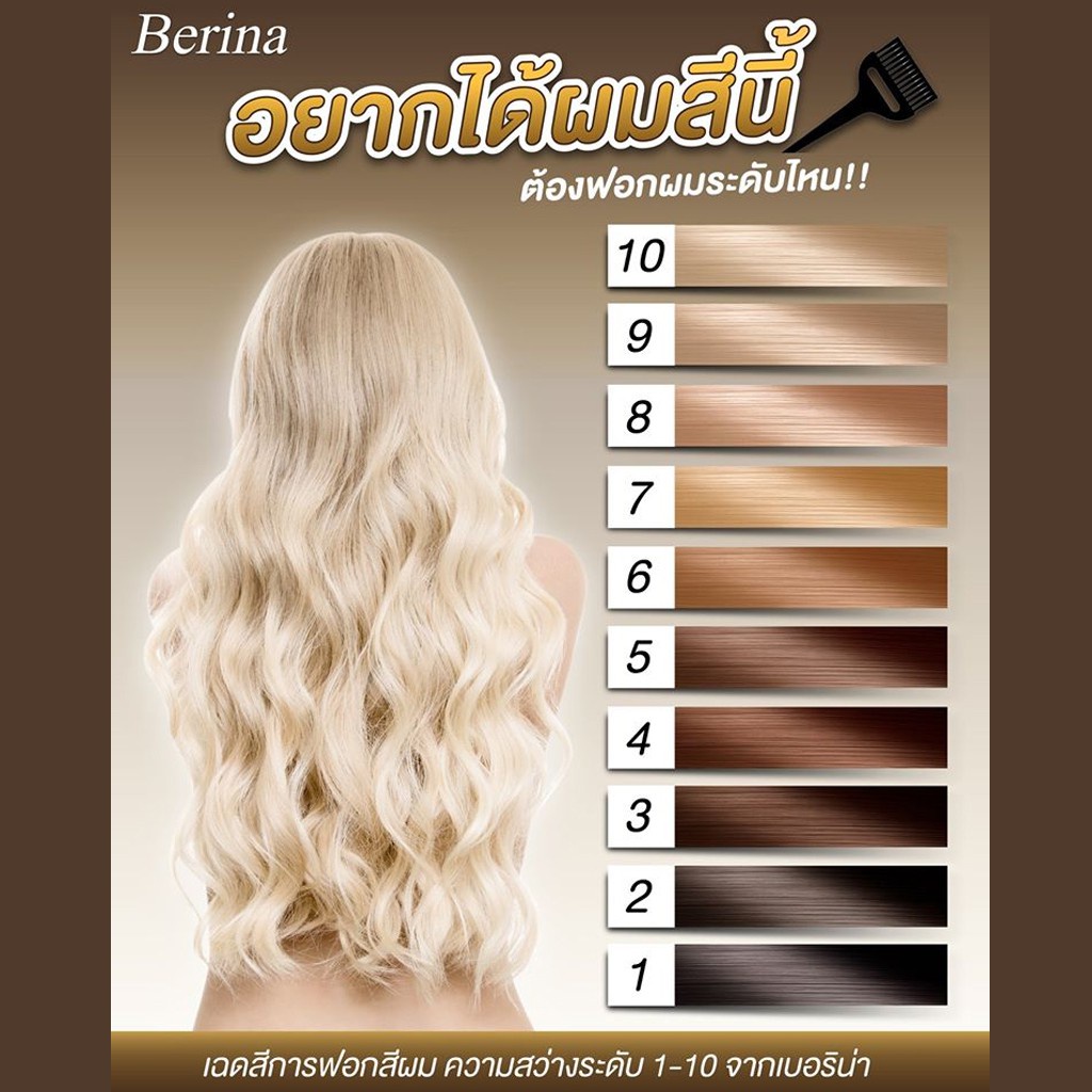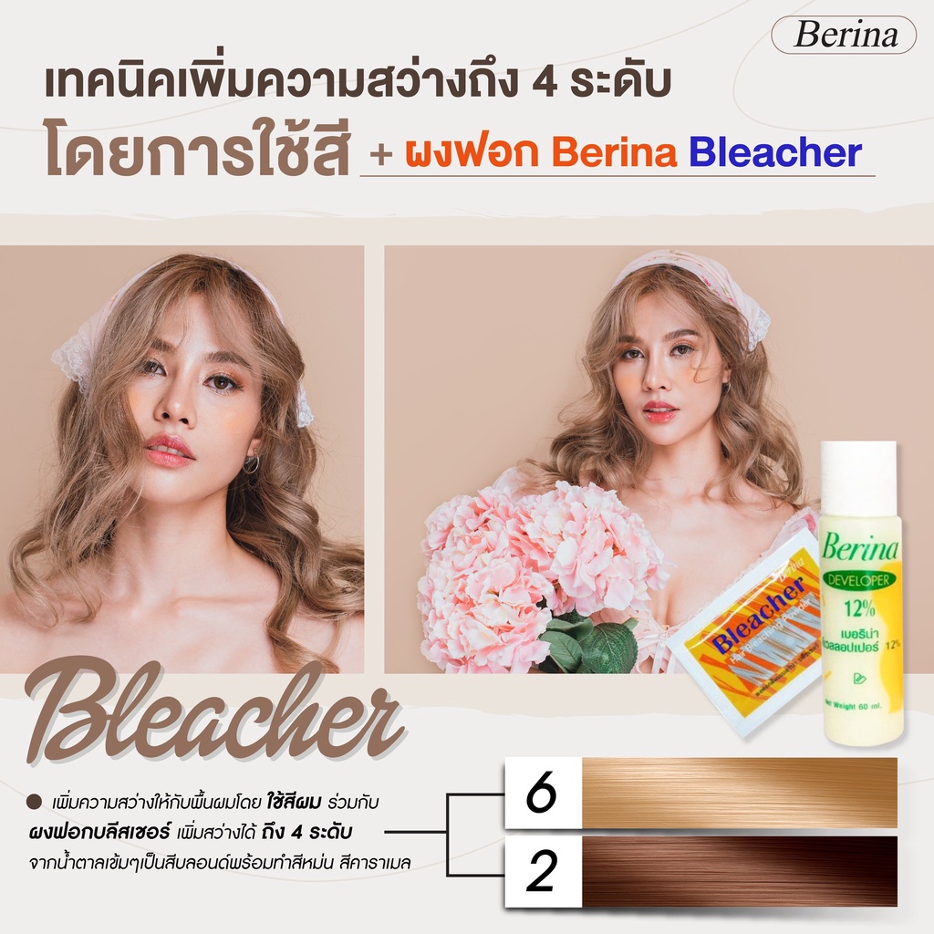 Berina hair bleaching powder ผงฟอก ผงกัด สีสว่าง เปลี่ยนสีผม เบอริน่า บลีชเชอร์ 1 ชุด