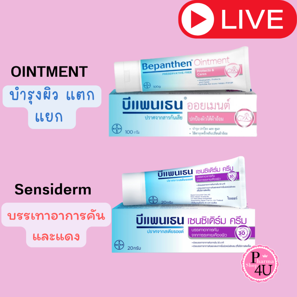 BEPANTHEN OINTMENT บีแพนเธน ออยเมนท์ ปกป้องดูแลผิวจากผื่นผ้าอ้อม 30/50/100 กรัม SENSIDERM 20GM #L1