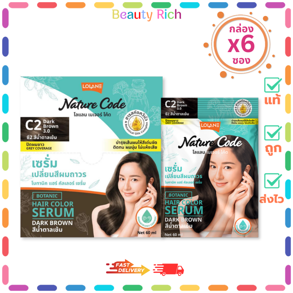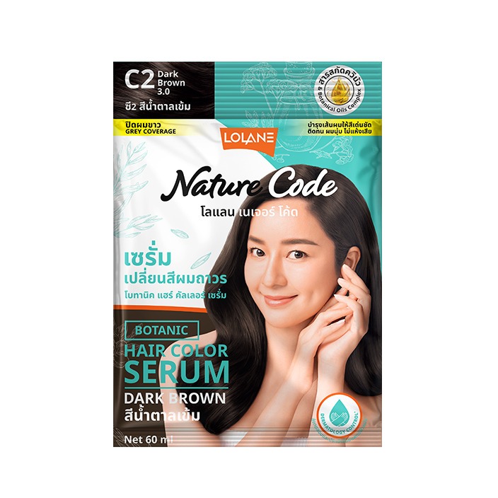 (กล่อง 6 ซอง) LOLANE โลแลน เนเจอร์โค้ด โบทานิค แฮร์ คัลเลอร์ เซรั่ม #C2 สีน้ำตาลเข้ม (60 ml.)