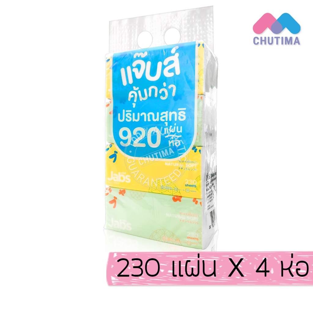 (ยกแพ็ก) แจ๊บส์ กระดาษทิชชู่ เช็ดหน้า หนา 2 ชั้น Jabs Natural Soft Facial Tissue