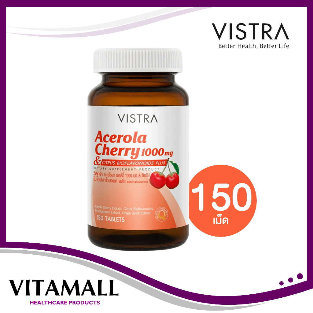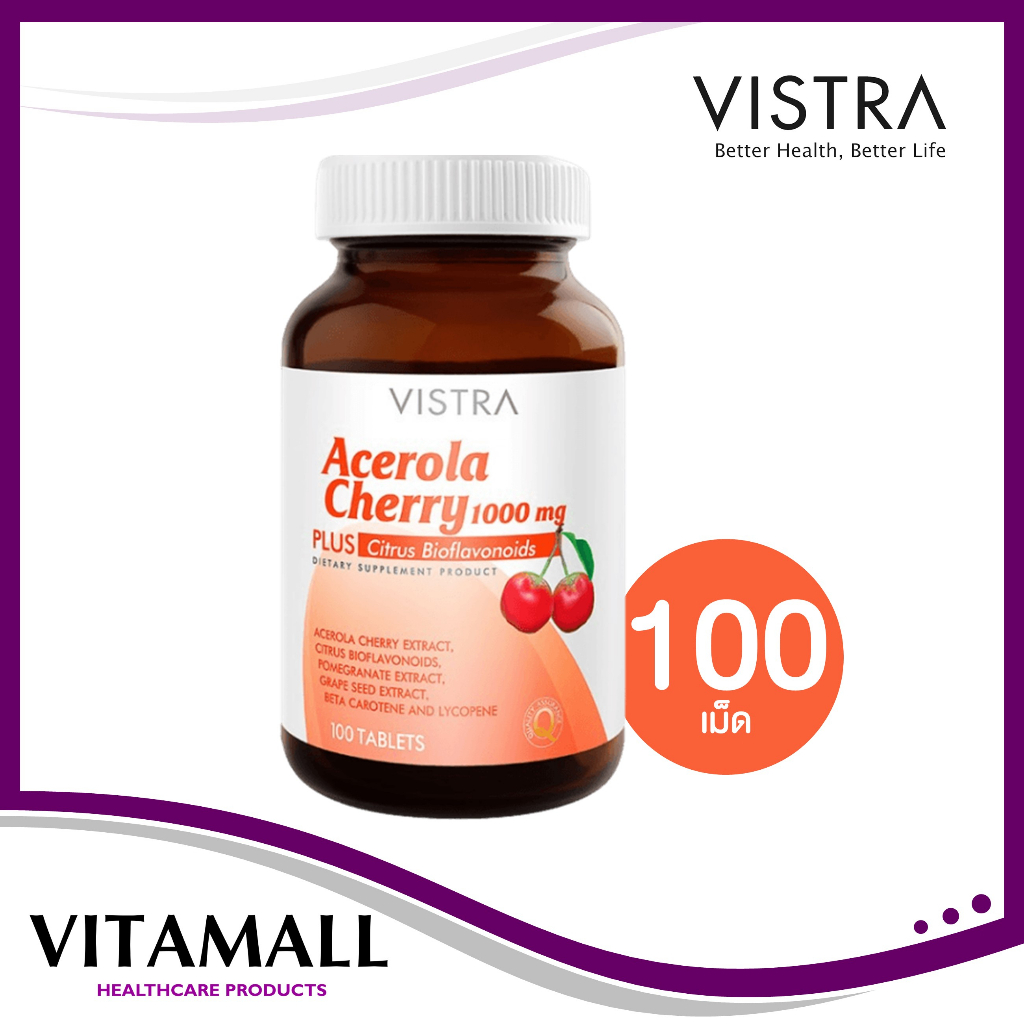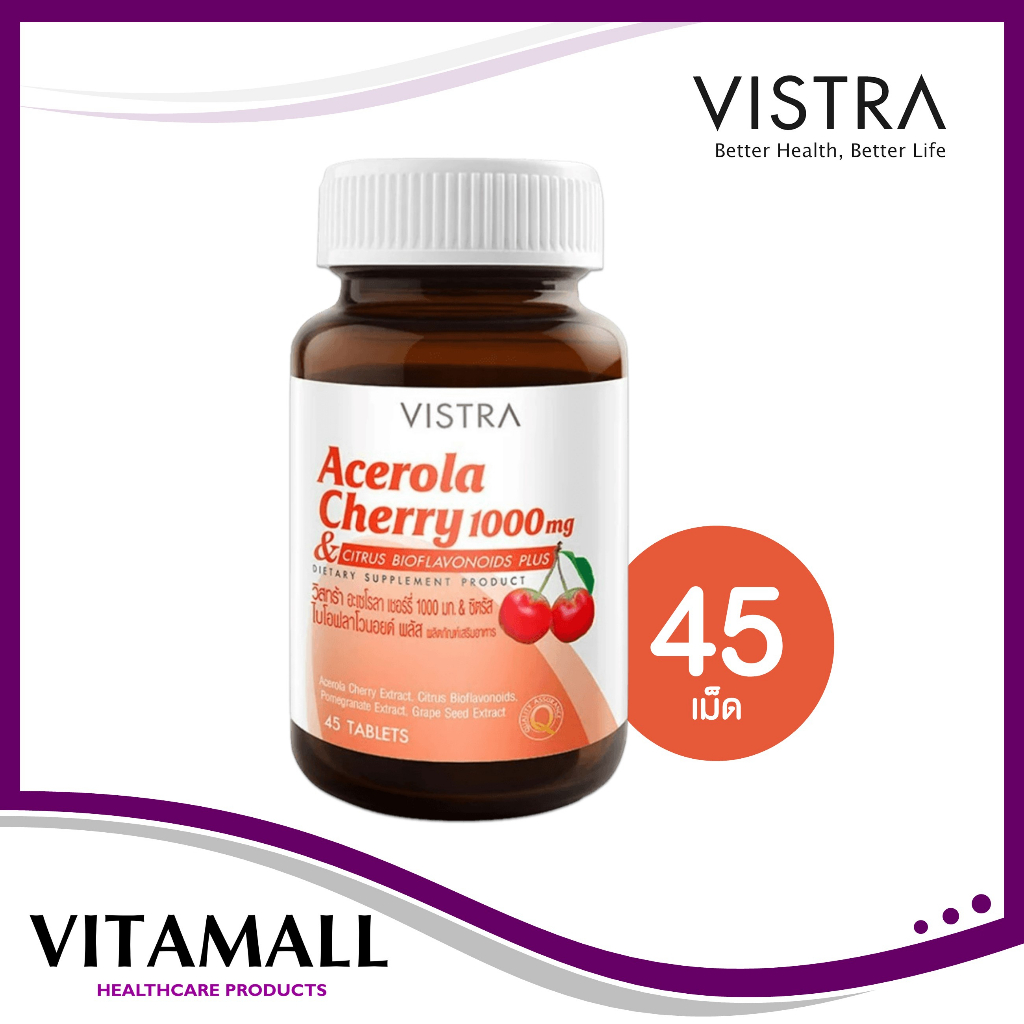 Vistra Acerola Cherry 1000 mg 45,60,100 และ150 เม็ด วิสทร้า อะเซโรล่า เชอร์รี่