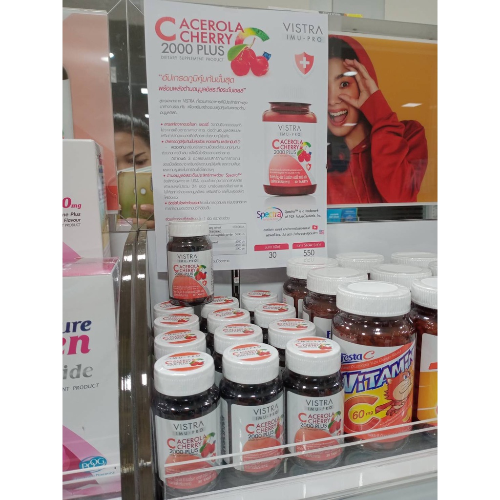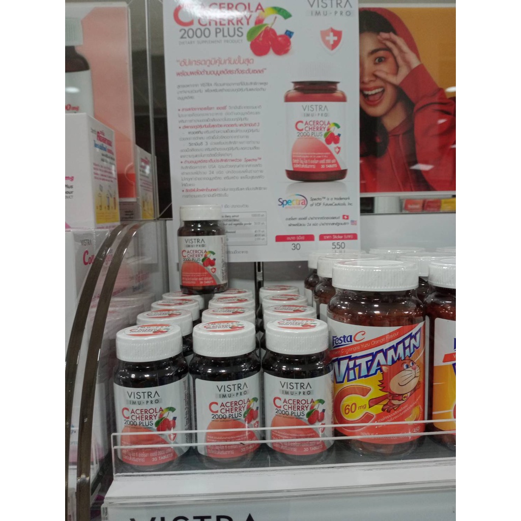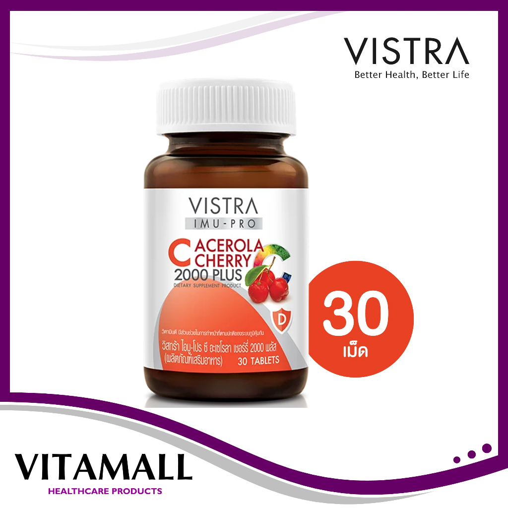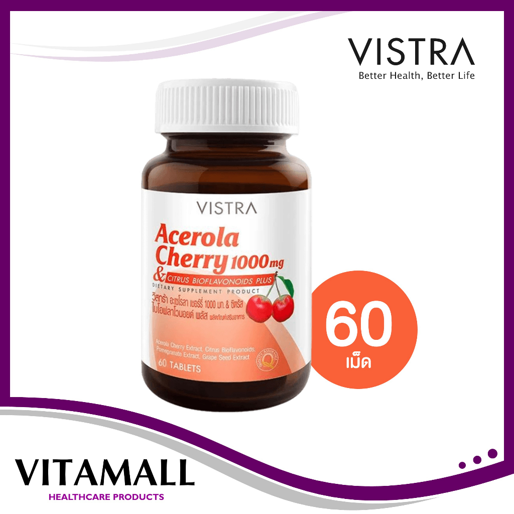 Vistra Acerola Cherry 1000 mg 45,60,100 และ150 เม็ด วิสทร้า อะเซโรล่า เชอร์รี่