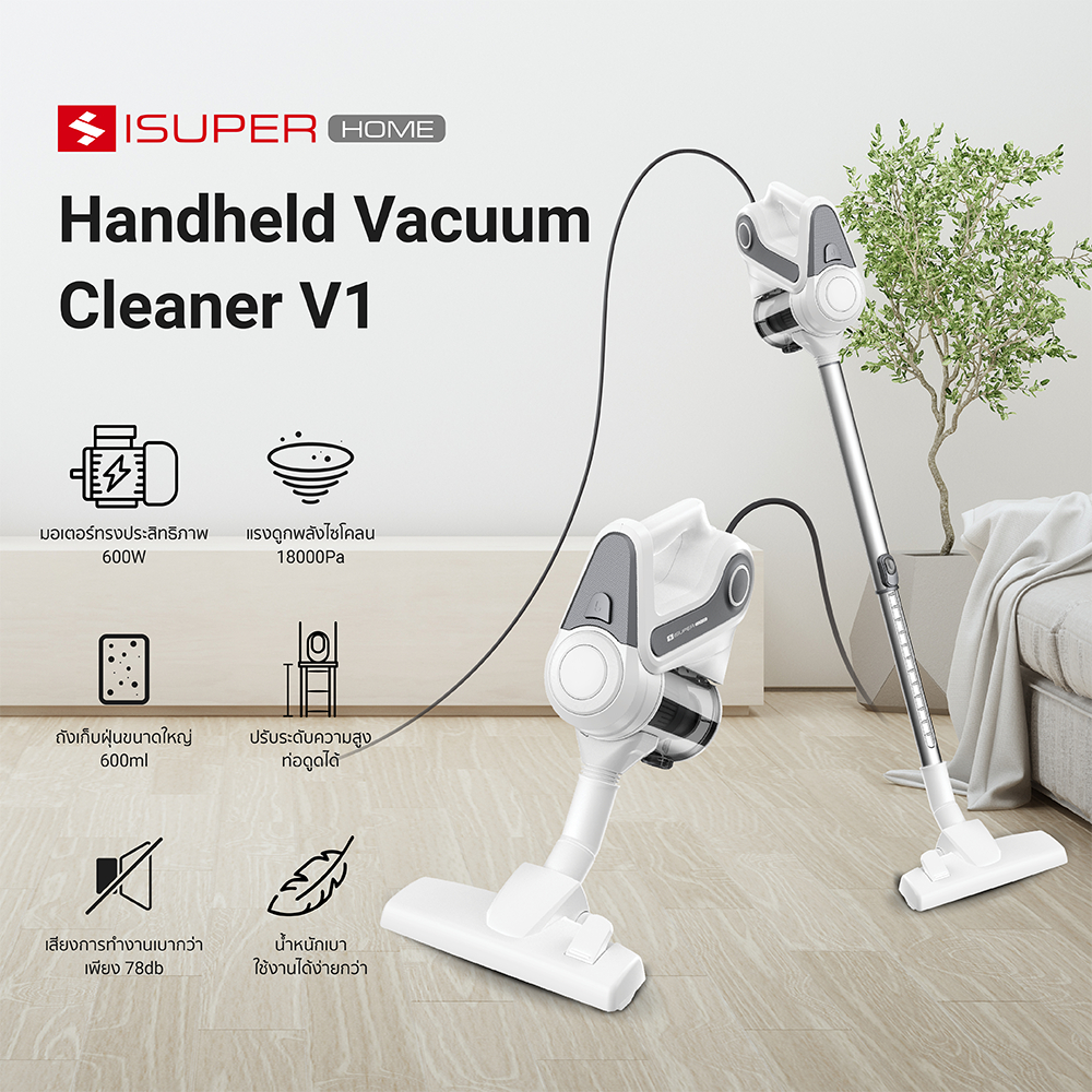 [ลดเหลือ 899] iSUPER Vacuum Cleaner V1 เครื่องดูดฝุ่นพลังไซโคลน แรงดูดสูง 18Kpa เครื่องดูดฝุ่นในบ้าน -12M