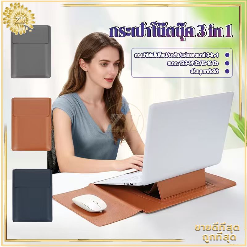 เคสโน๊ตบุ๊ค กระเป๋าโน๊ตบุ๊ค 3 in 1 แล็ปท็อปกรณี เคสหนังใส่โน๊ตบุ๊ค ซองหนัง PU Laptop bag Macbook มีฐานรองตั้งแล็ปท็อป