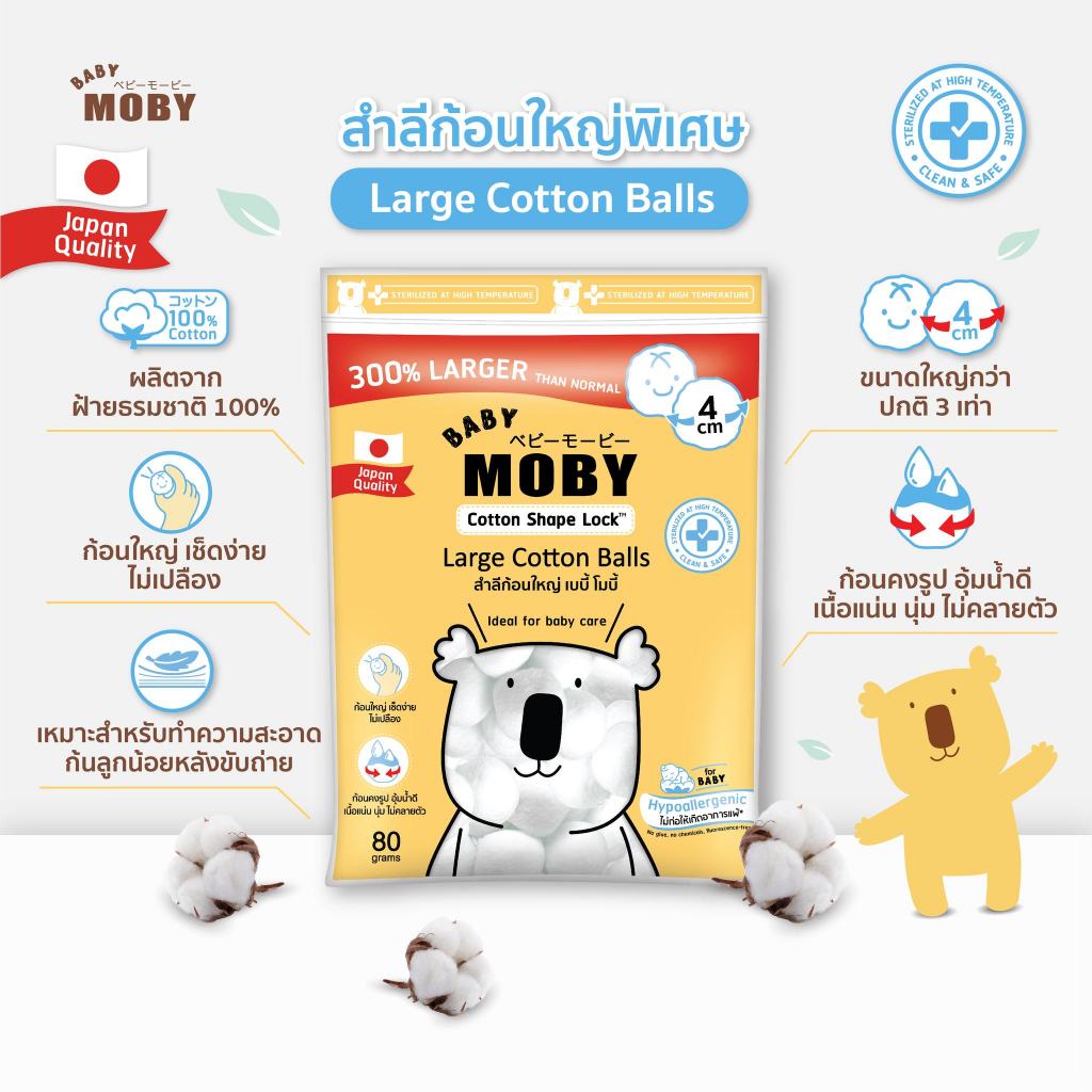 เกรดพรีเมี่ยม❤️ Baby Moby สำลีก้อนใหญ่ เช็ดตา ผลิตจากฝ้ายธรรมชาติ 100% สำลีก้อน (80 กรัม) Large Cotton Ball