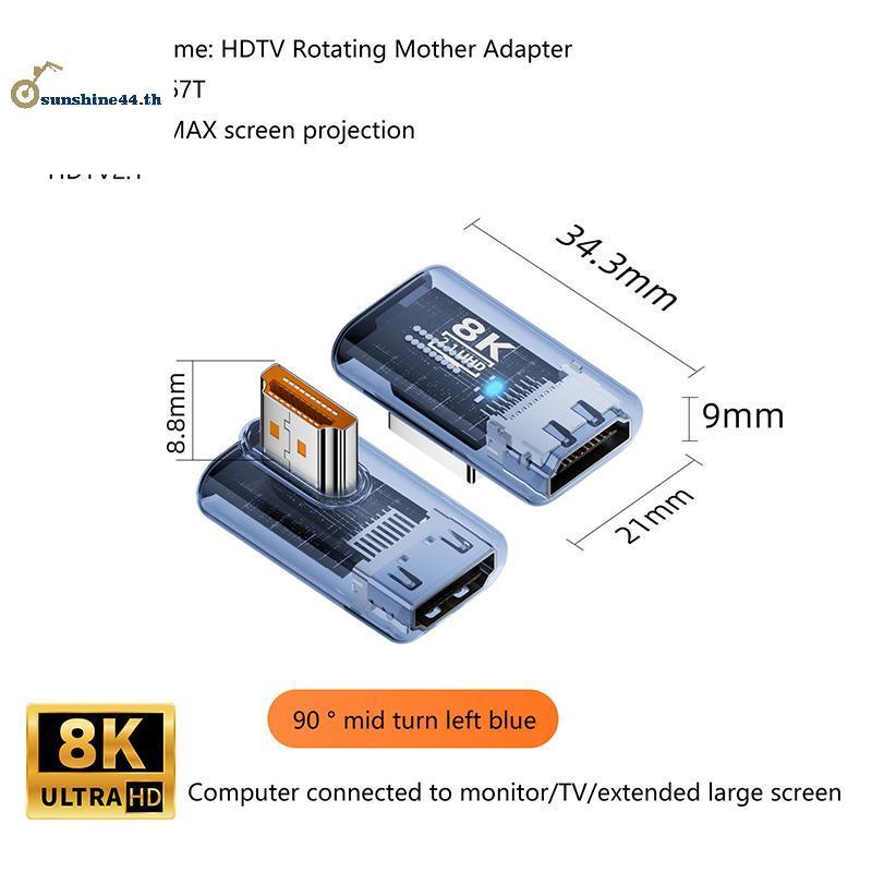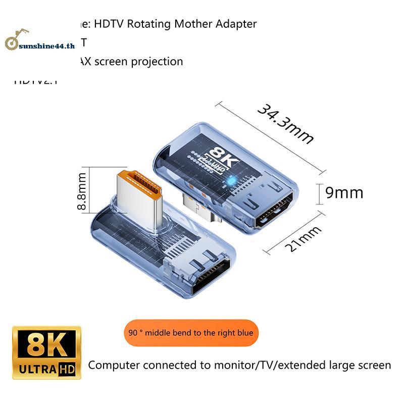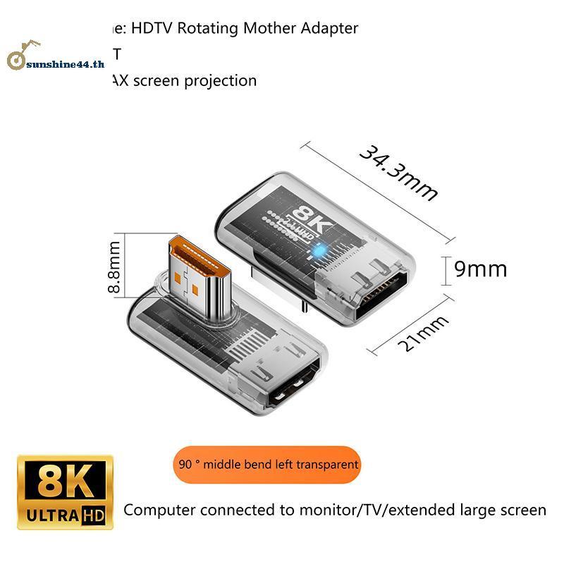 FOURSUN 8K 2.1 อะแดปเตอร์ชายหญิง 8K @ 60Hz ชายกับหญิง Connector Up Down มุม 90 270 360 องศาสําหรับสาย PC แล็ปท็อป HDTV TH