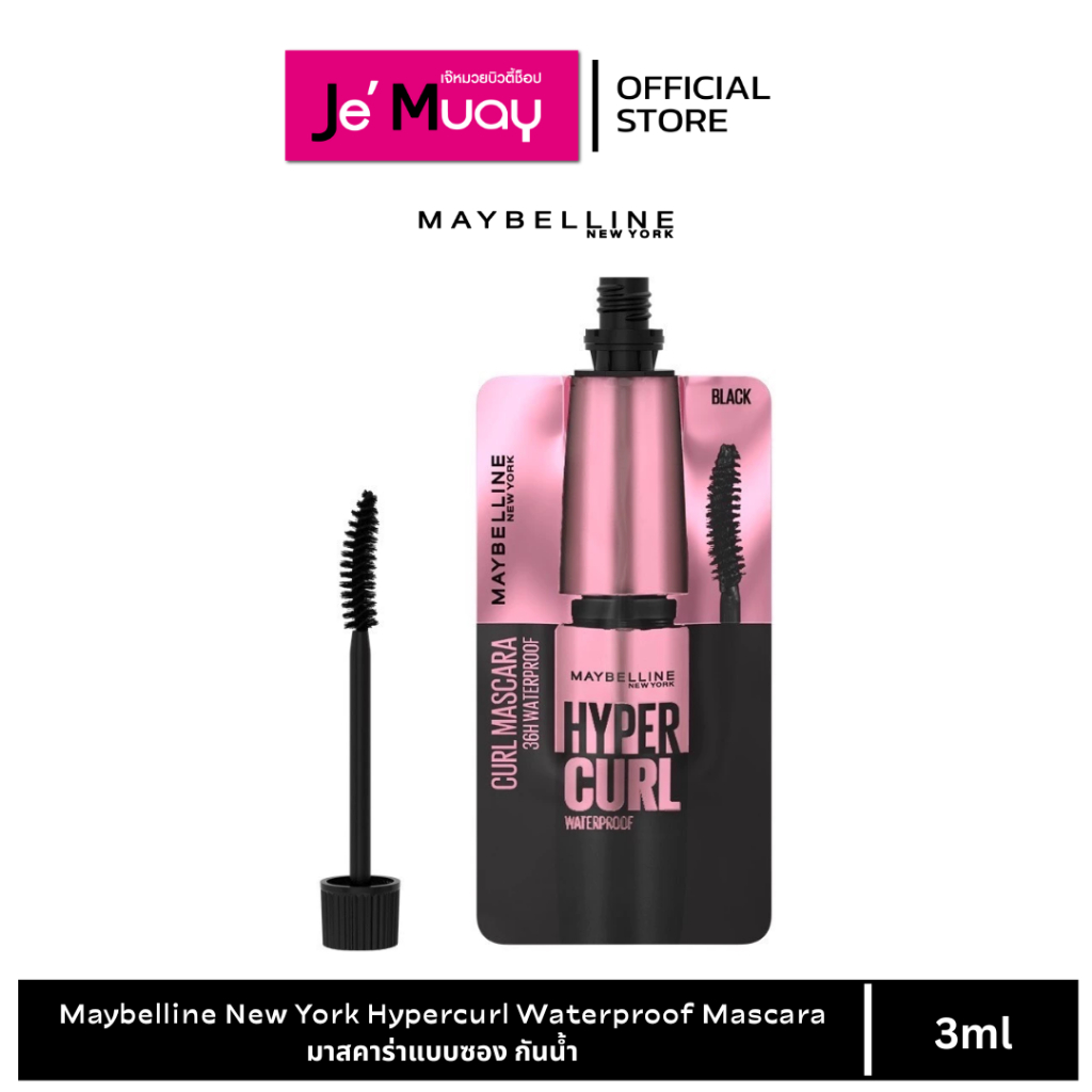 มาสคาร่า [ซอง] เมย์เบลลีน นิวยอร์ก Maybelline New York Hypercurl Waterproof Mascara ไฮเปอร์เคิร์ลวอเตอร์พรู๊ฟ 3มล.