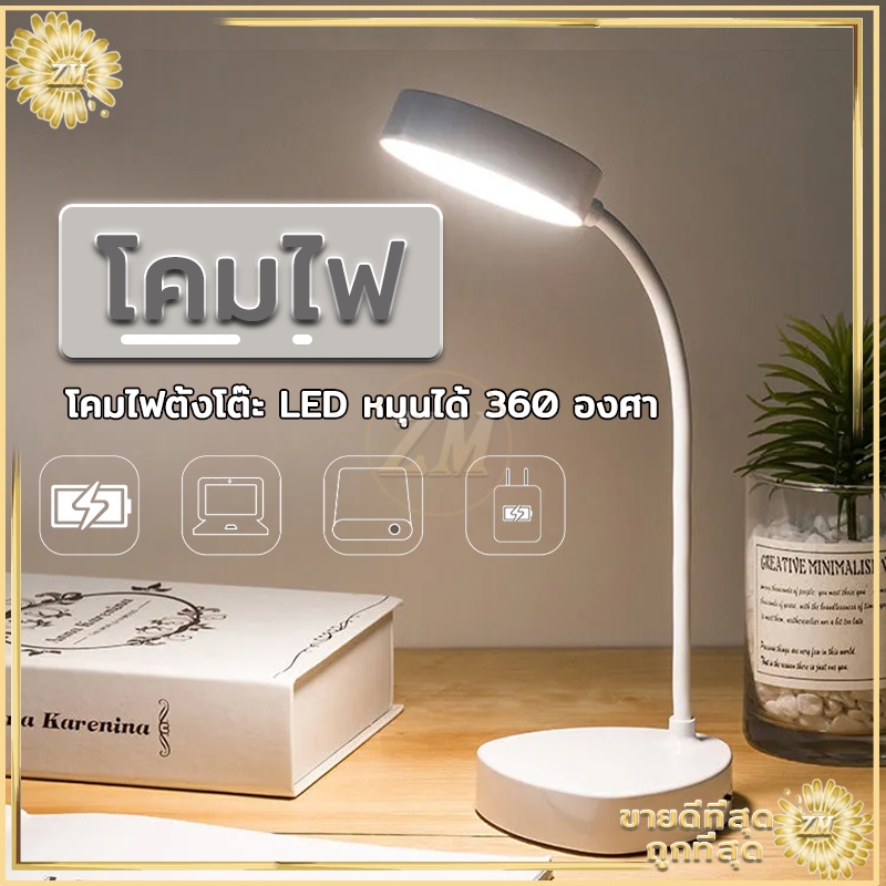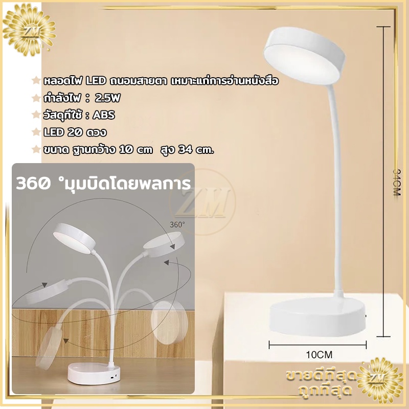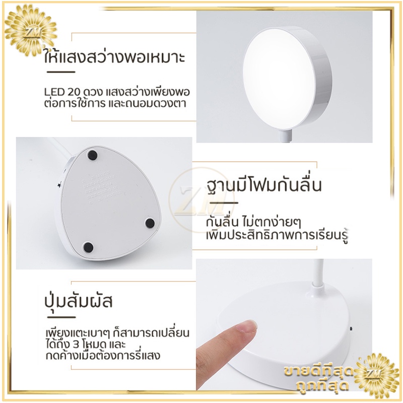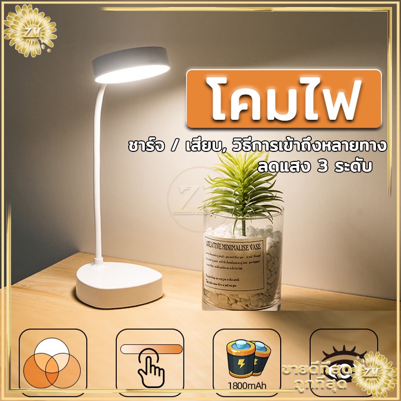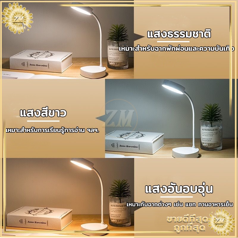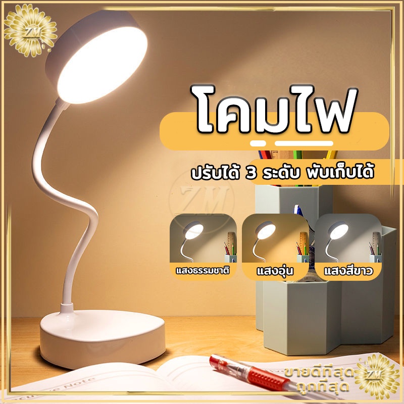 ไฟตั้งโต๊ะ led tablelamp หัวเตียง อ่านหนังสือ มินิมอล ปรับแสงได้3สี พับเก็บได้