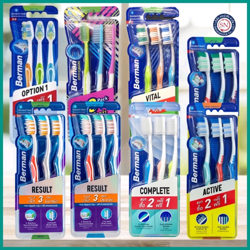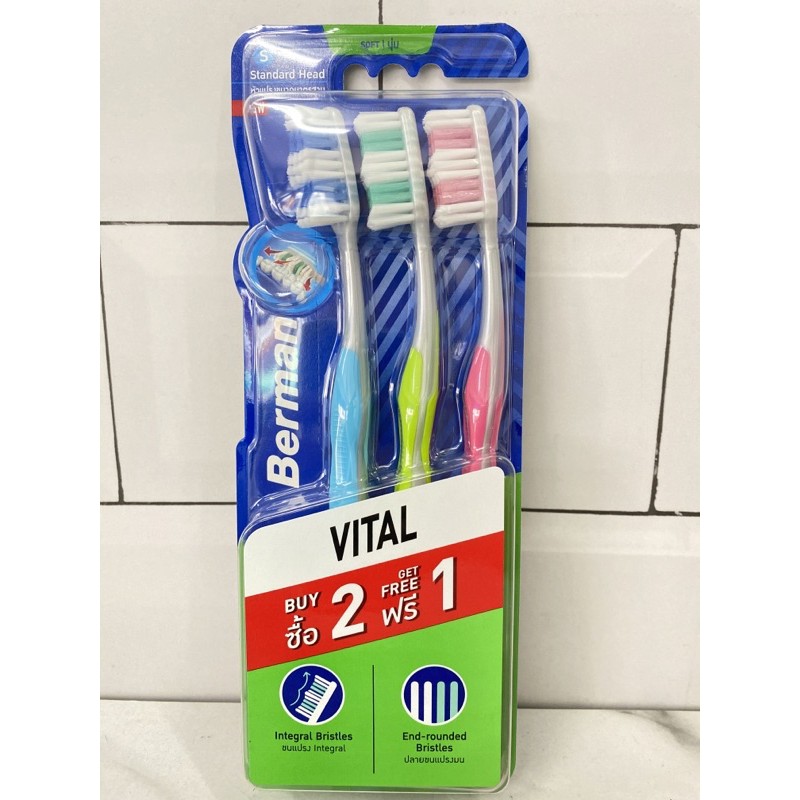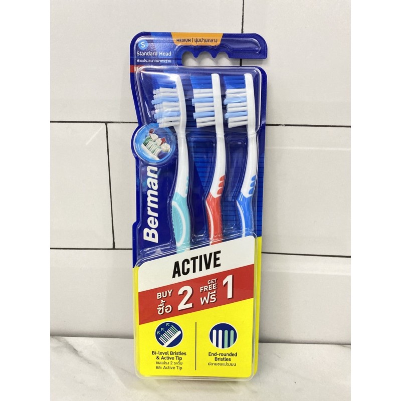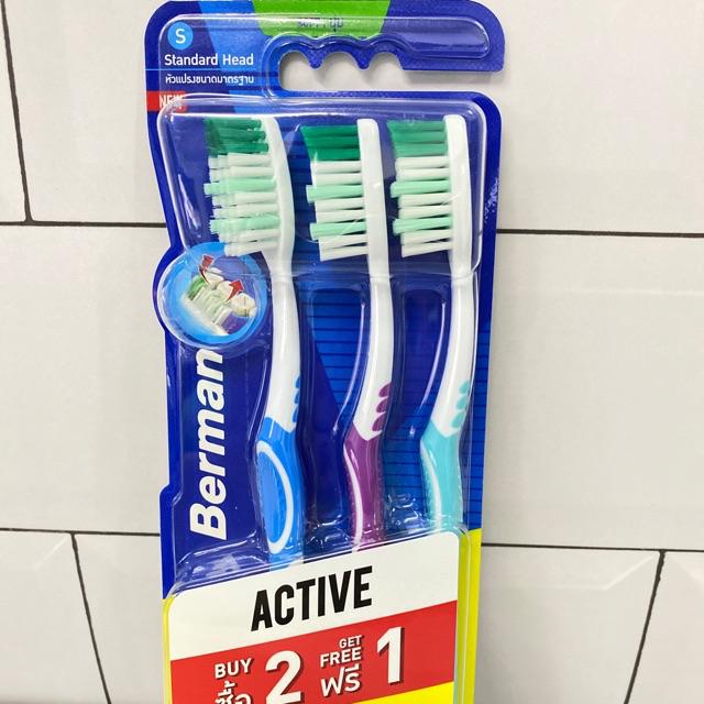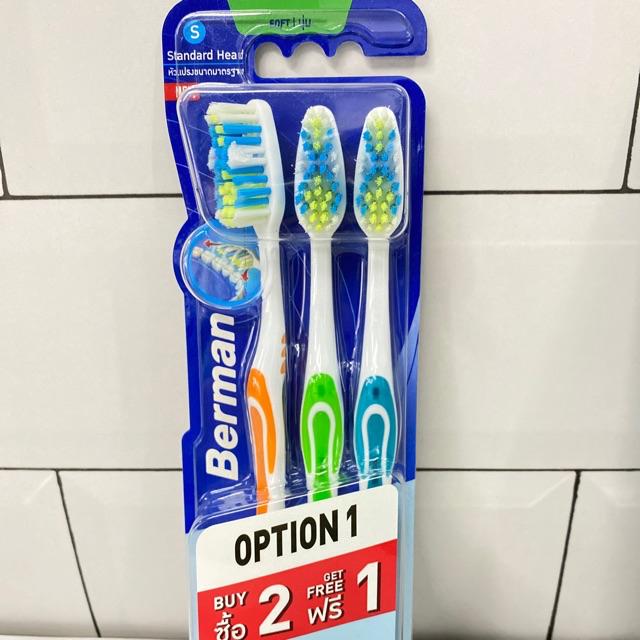 ถูกและดีมีจริง💟 Berman แปรงสีฟันเบอร์แมน แพ็ค3 แปรงสีฟัน ขนนุ่ม นุ่มปานกลาง นุ่มพิเศษ