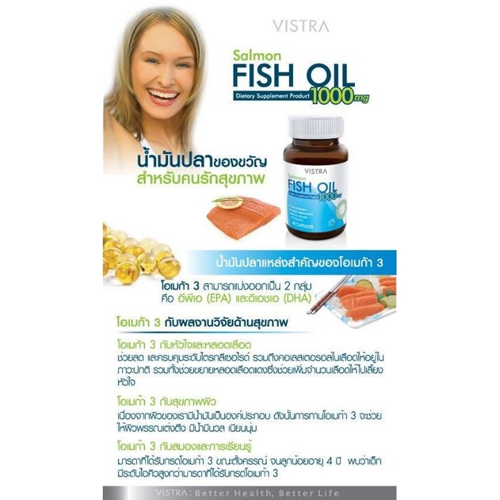 Vistra Salmon Fish Oil 1000mg วิสทร้า ฟิชออย 1000มก. 45 เม็ด 6 ขวด