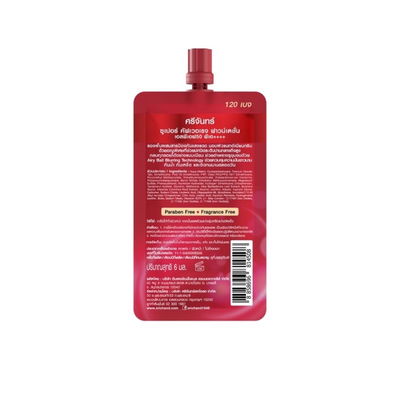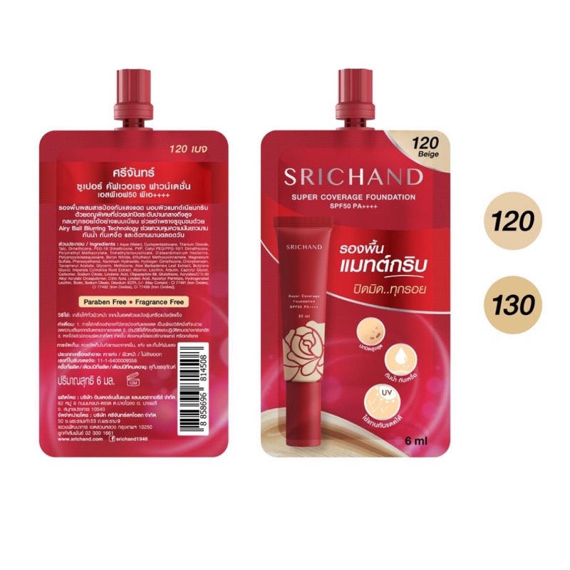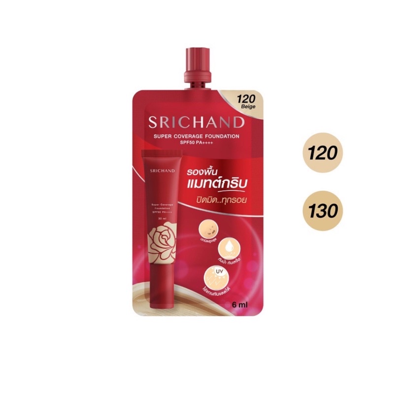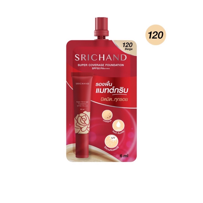 Srichand ศรีจันทร์ รองพื้น ซุปเปอร์ คัฟเวอเรจ SPF50 PA++++ 6ml