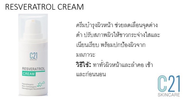 C21 Resveratrol Cream 15ml ช่วยลดจุดด่างดำ ผิวขาวใส ป้องกันริ้วรอยก่อนวัย