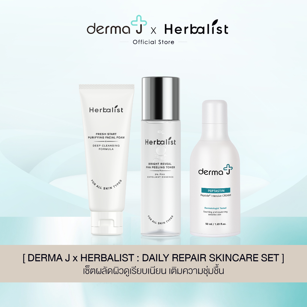 DERMA J x HERBALIST: DAILY REPAIR SKINCARE SET ผลัดผิวดูเรียบเนียน เติมความชุ่มชื้น