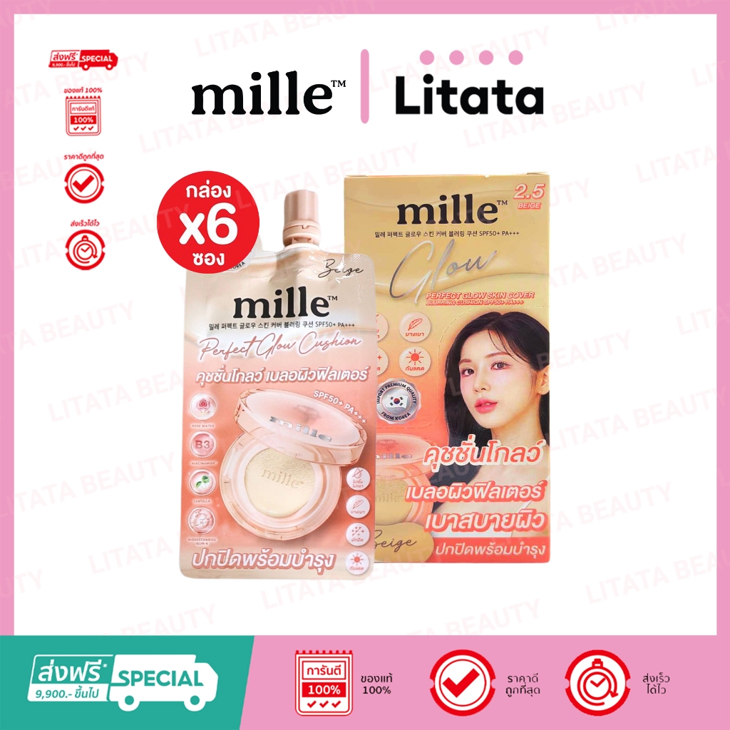 [ กล่อง*6 ] MILLE PERFECT GLOW SKIN COVER BLURRING CUSHION คุชชั่นโกลว์ 6 กรัม