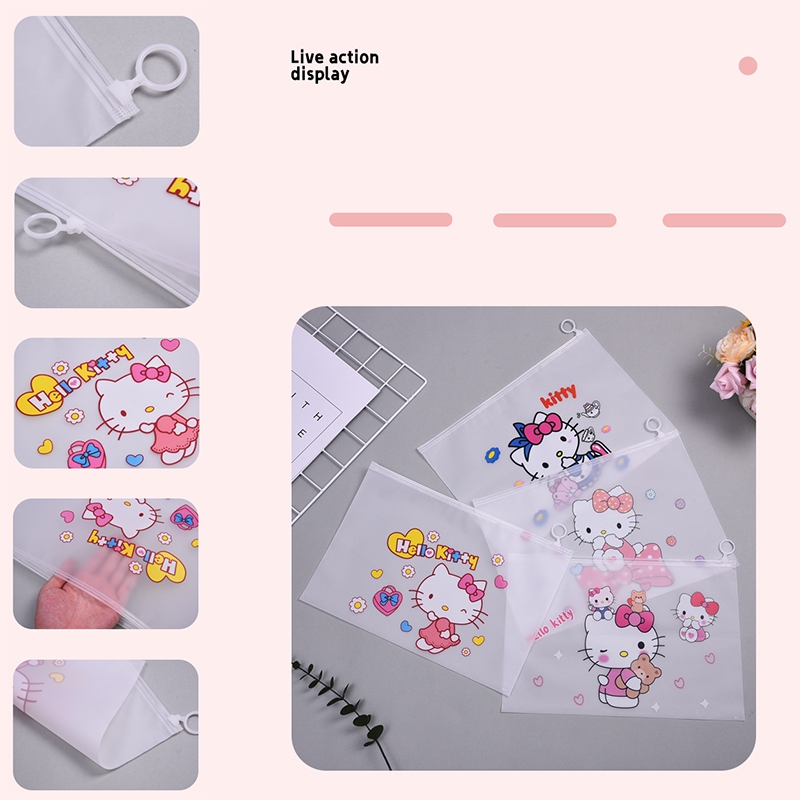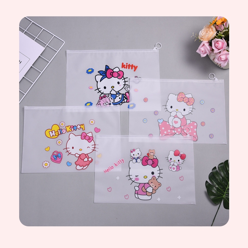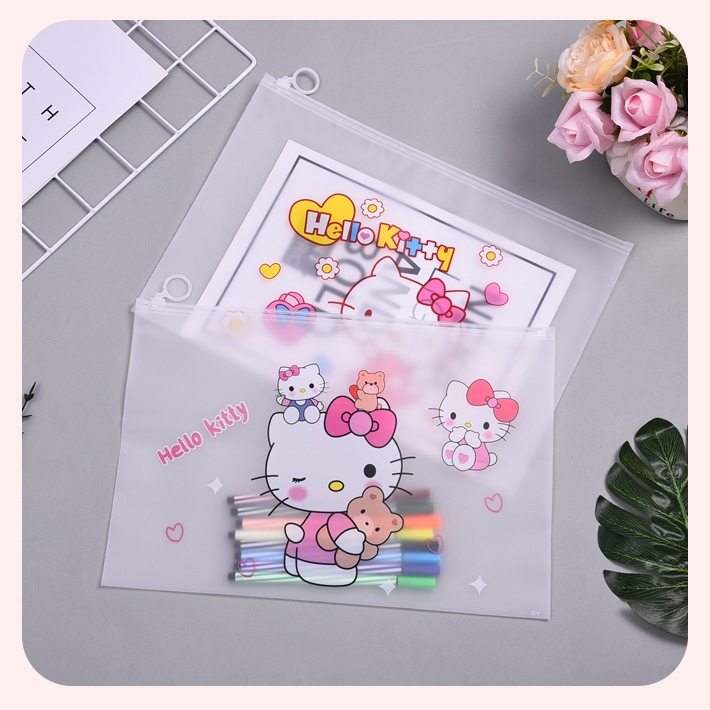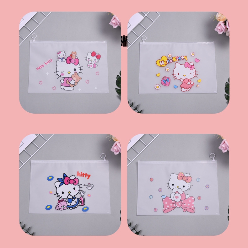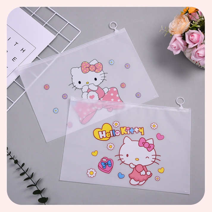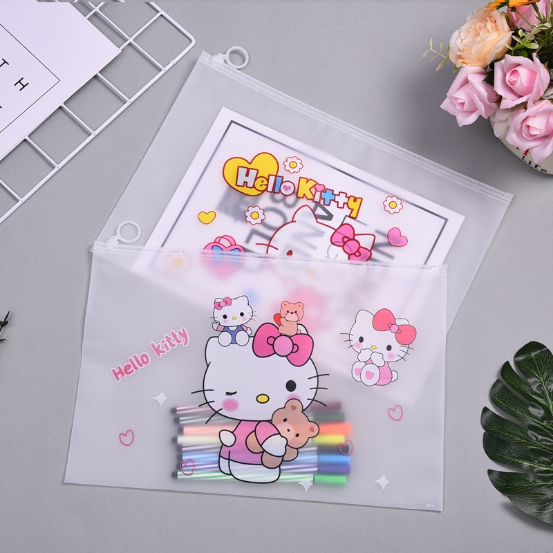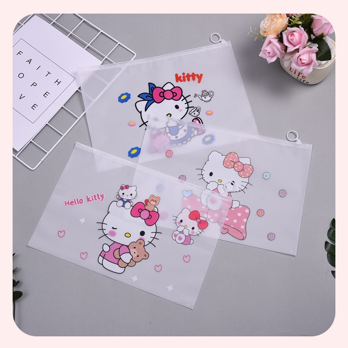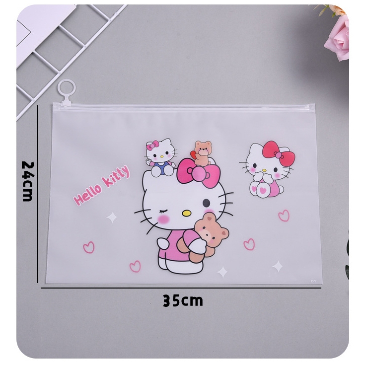 🌈ซองซิปพลาสติก A4🎒กระเป๋าใส่เครื่องเขียน⭐Hello Kitty 24x35 cm📌เลือกลาย✔️พร้อมส่งในไทย กระเป๋าดินสอ