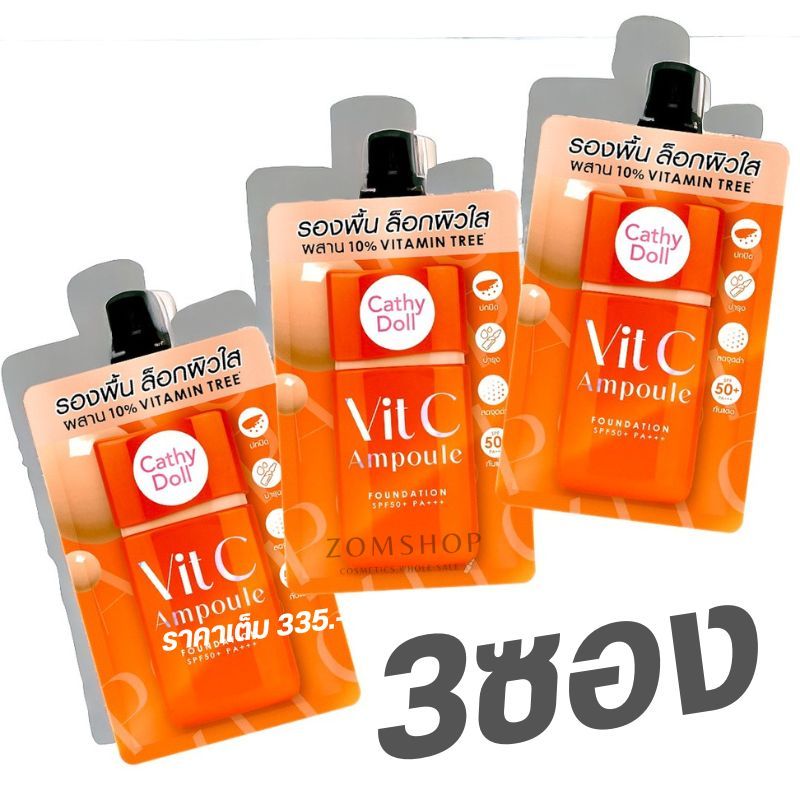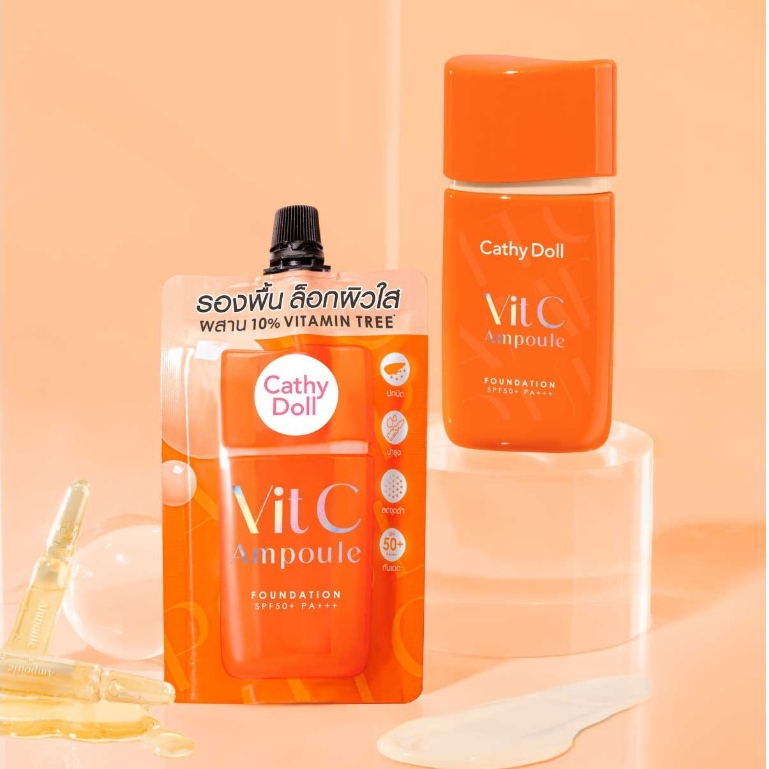 【ซอง】Cathy Doll รองพื้น【วิตซีแอมพูล-เบลล่า】🧡กันแดด ปกปิด Vit C Ampoule Foundation SPF50+ PA+++