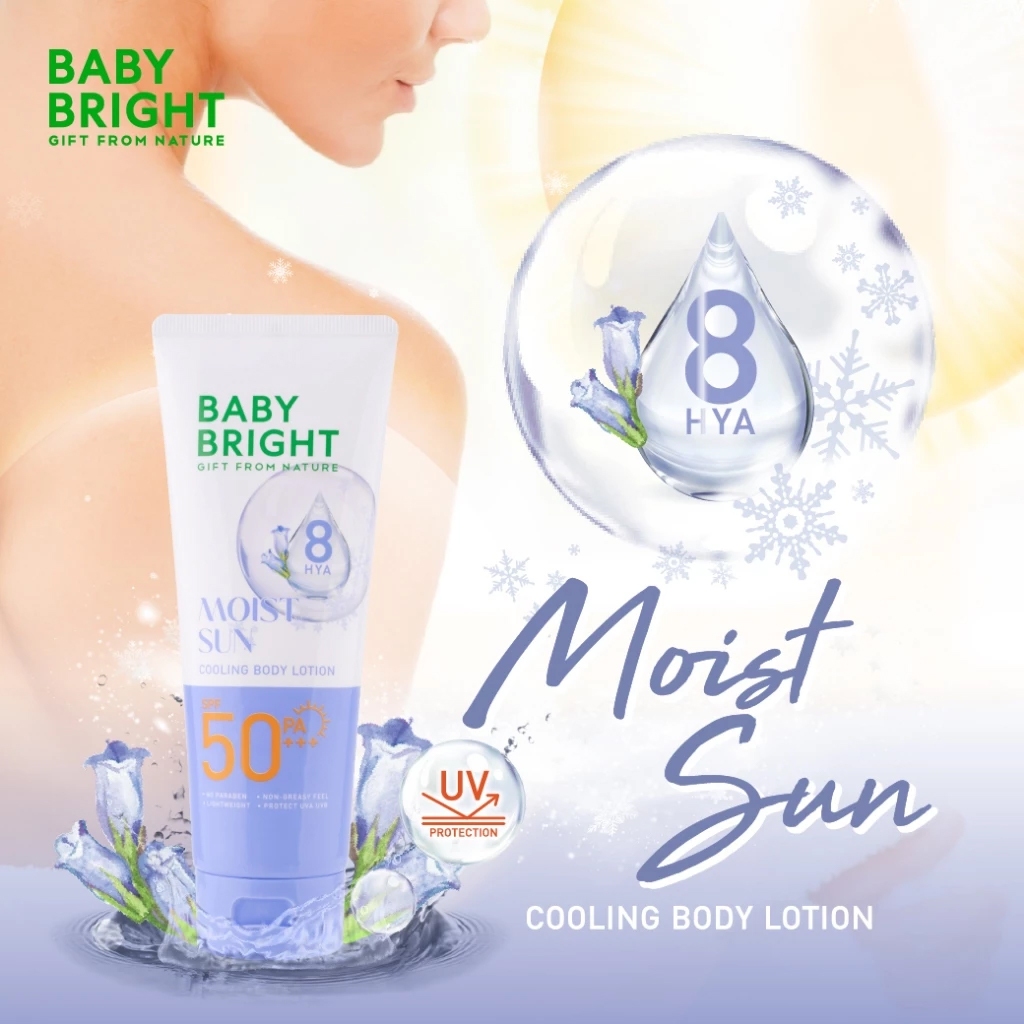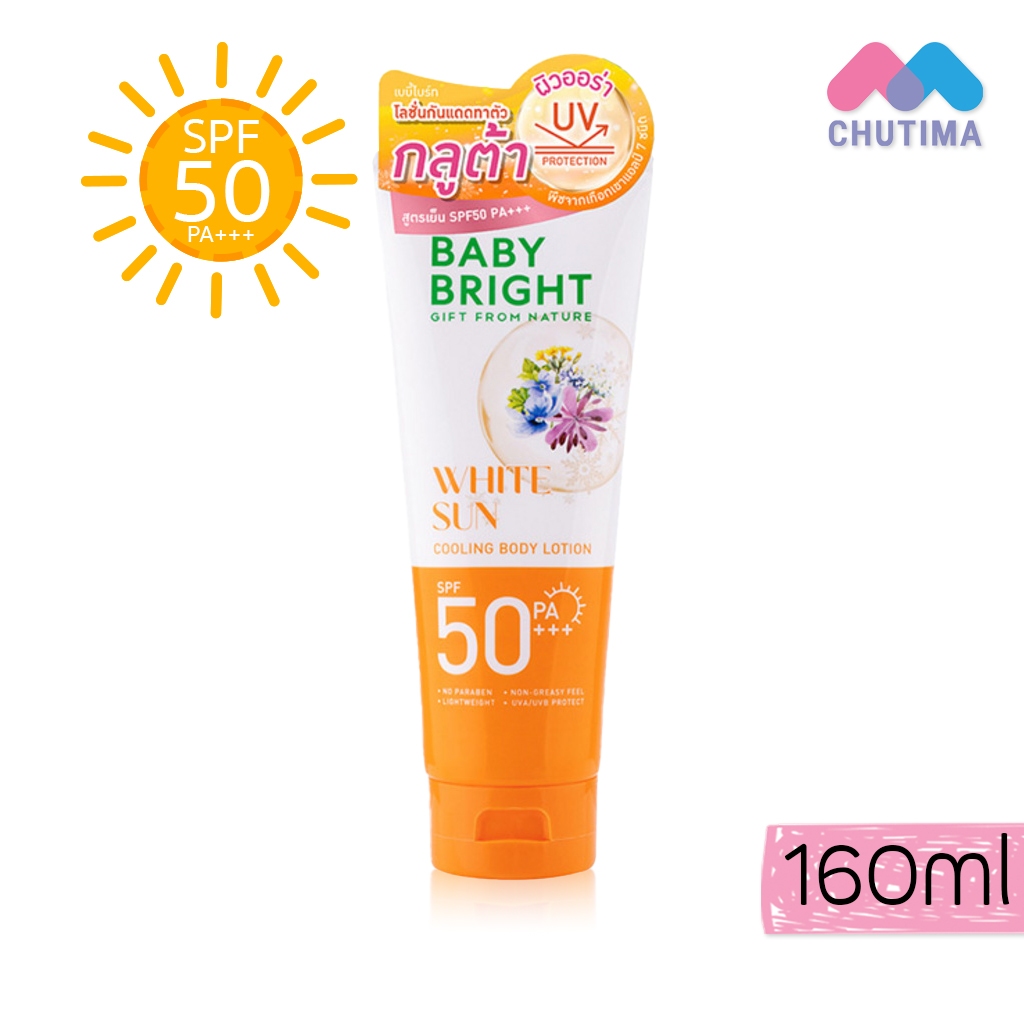 โลชั่นกันแดด เบบี้ไบร์ท สูตรเย็น ผิวอิ่มน้ำ Baby Bright Sun Cooling Body Lotion SPF50 PA+++ 160 ml.