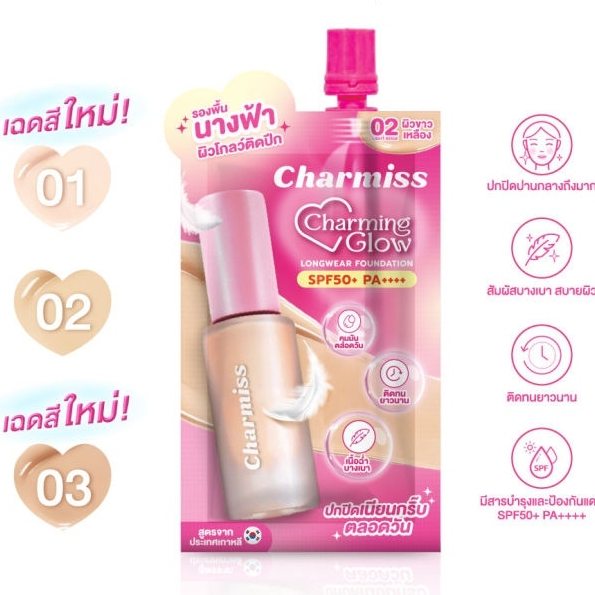 (กล่อง 6 ซอง) Charmiss Charming Glow Longwear Foundation ชาร์มิส รองพื้นงานผิว ปกปิด (5g.)