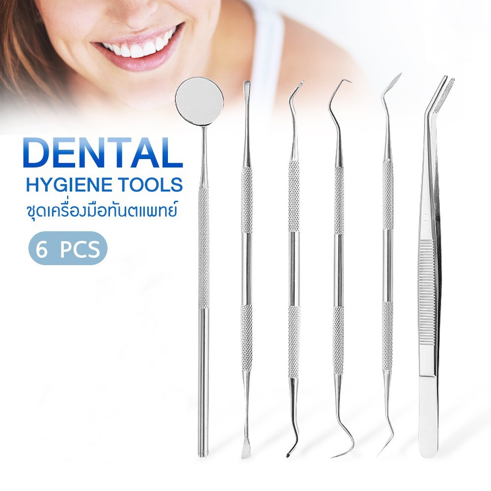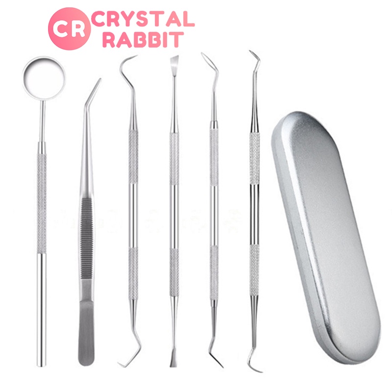 CRYSTAL RABBIT ชุดขูดหินปูน 6ชิ้น ขูดหินปูน ทำความสะอาดช่องปาก มาตรฐานทางทันตกรรม 6pcs/Set Dentist Tool Dental Treatment Kit