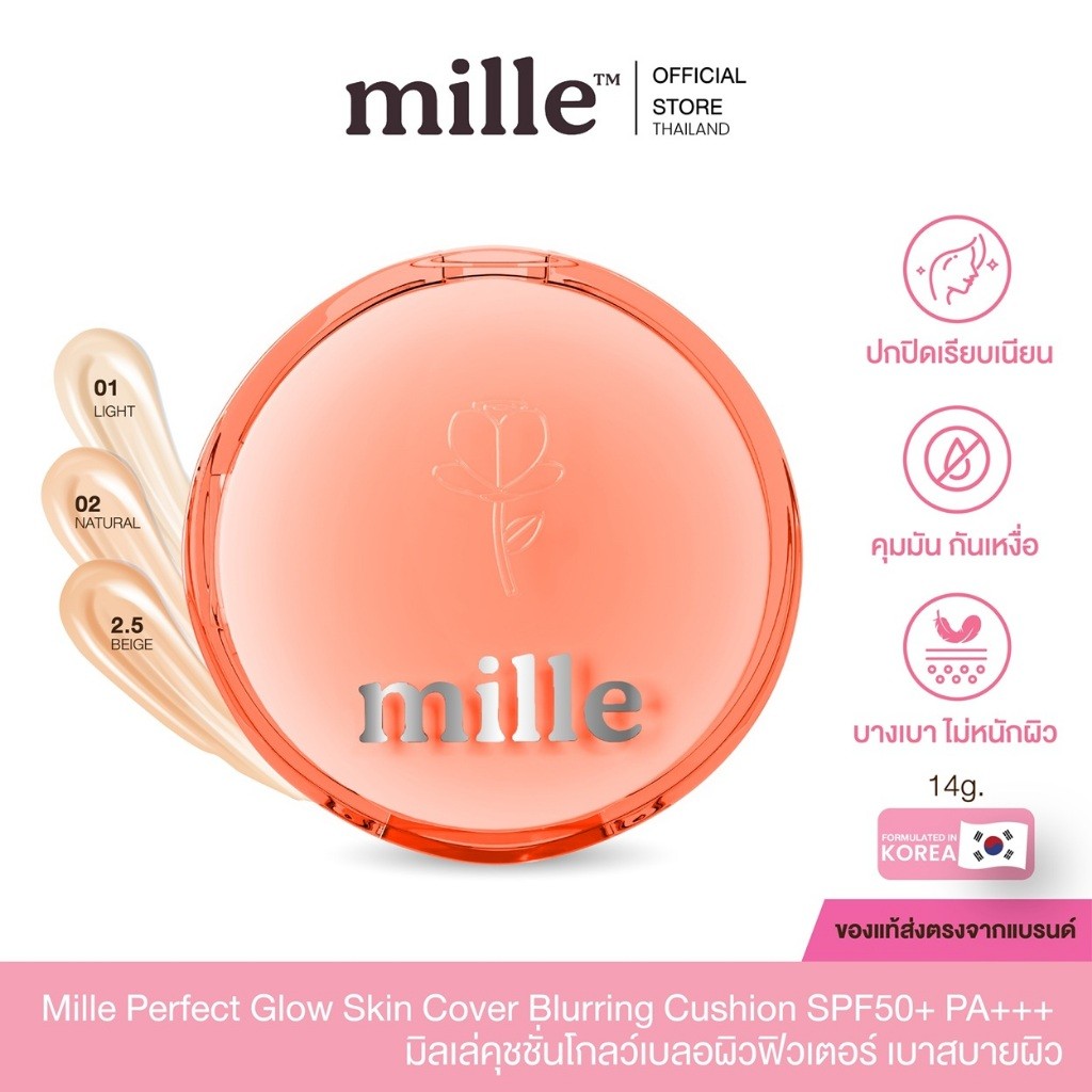 ** 1 ตลับส้ม ** Mille Perfect Glow Skin Cover Blurring Cushion SPF50+ PA+++ ม ิลเล่คุชชั่นโกลว์