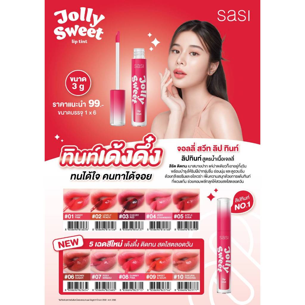 ลิปจิ้มจุ่ม ศศิ จอลลี่ สวีท ลิป ทินท์ ลิปสติก ติดทน เบาสบายปาก ไม่ติดแมสก์ SASI Jolly Sweet Lip Tint 3g.