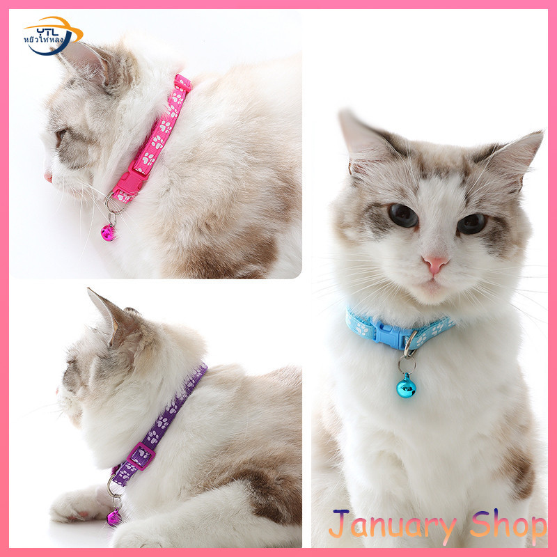 YTL ปลอกคอแมว 7 สี ปลอกคอสัตว์เลี้ยง รูปทรงดอกไม้ กระดิ่งแมว อกคอแมว แบบปรับขนาดได้ ปลอกคอลายรอยเท้าสัตว์น่ารัก