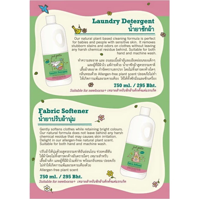 Just Gentle 3000ml น้ำยาปรับผ้านุ่มสำหรับเด็กออร์แกนิค Fabric Softener (3L)
