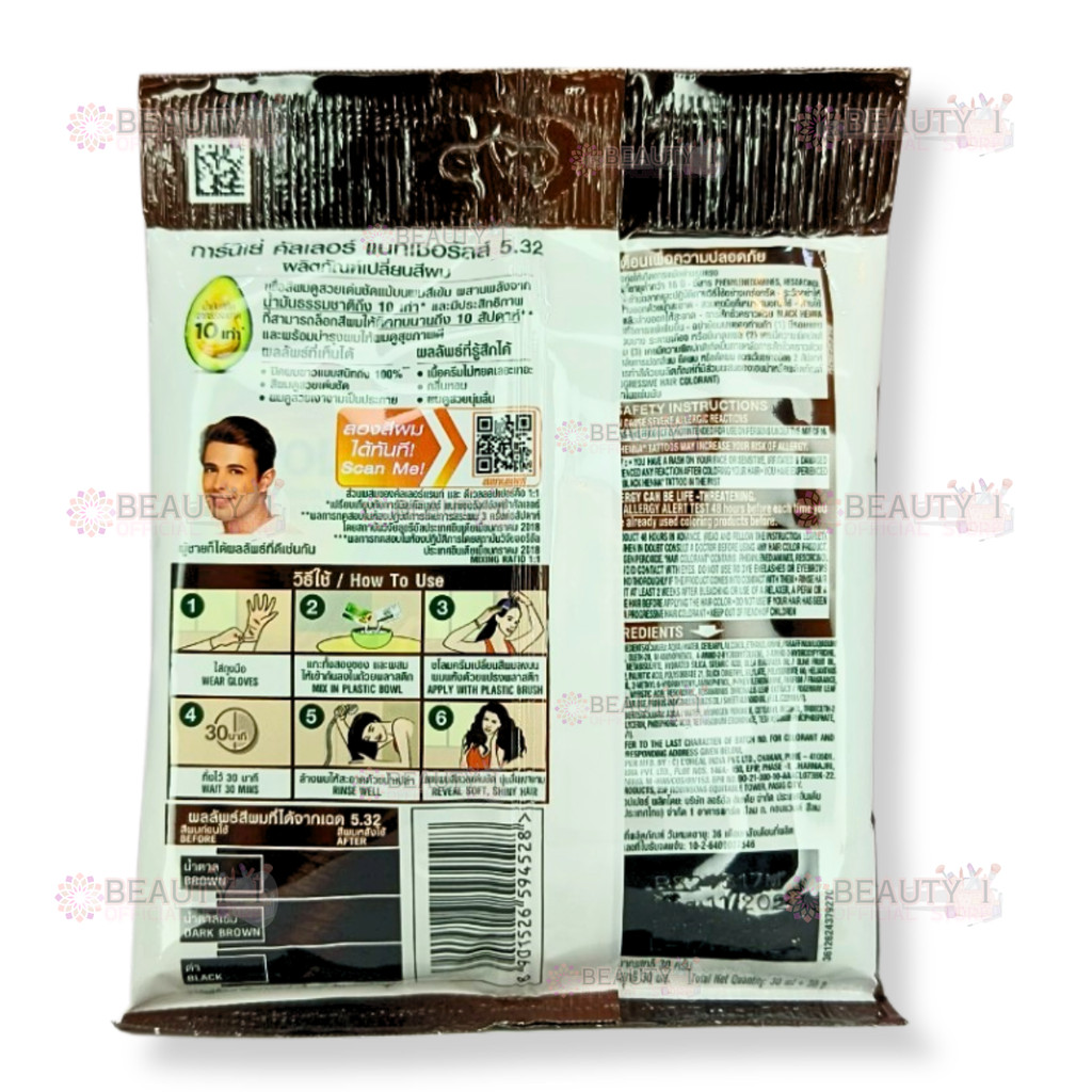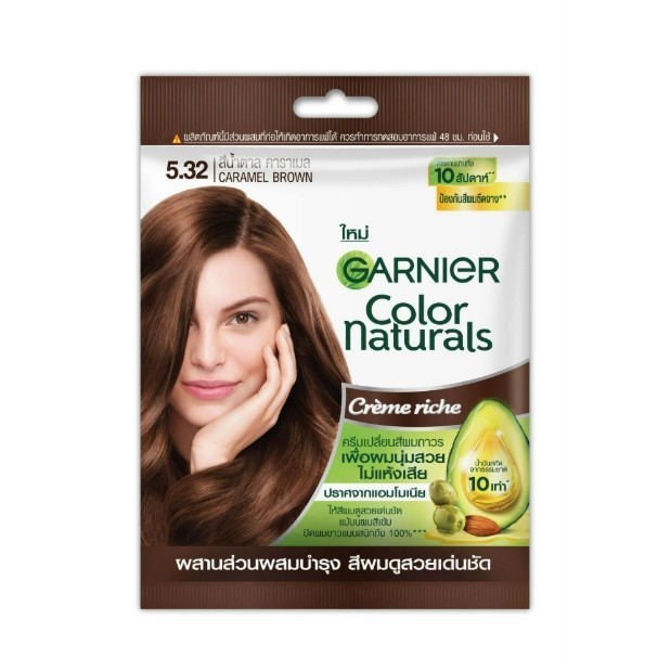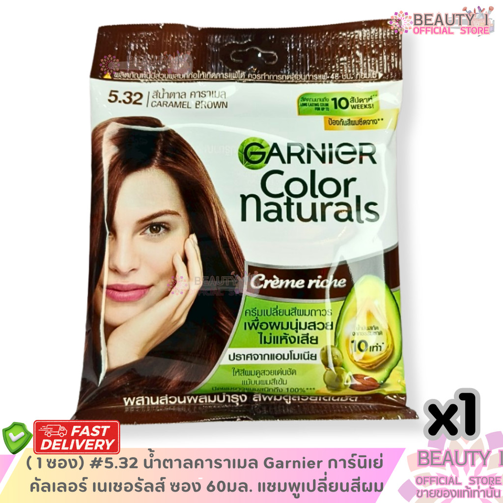 ( 1 ซอง) #5.32 น้ำตาล คาราเมล Garnier การ์นิเย่ คัลเลอร์ เนเชอรัลส์ ซอง 60มล. แชมพูเปลี่ยนสีผม