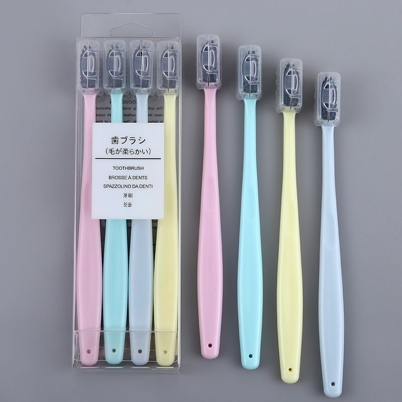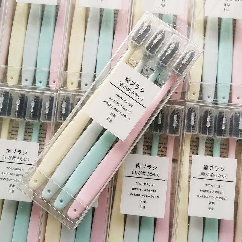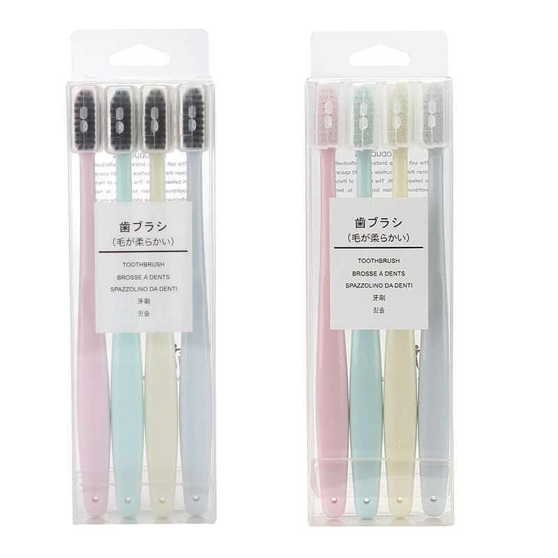😍แปรงสีฟัน เซ็ต4สี 4ด้าม สไตล์ญี่ปุ่น ขนแปรงนุ่ม ด้ามจับถนัดมือ พร้อมแพ็คเกจกล่อง
