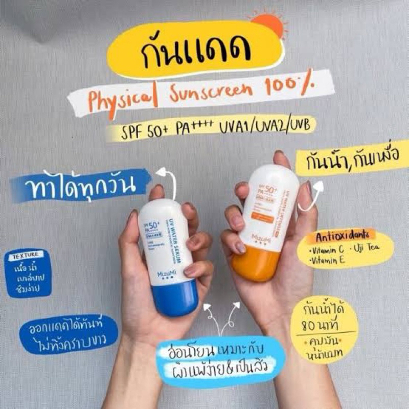 Exp 2026 Mizumi UV Water Serum กันแดด มิซูมิ SPF50+ PA++++ 40g เซรั่มกันแดดผิวหน้าและผิว สําหรับใช้ทุกวัน เนื้อบางเบา