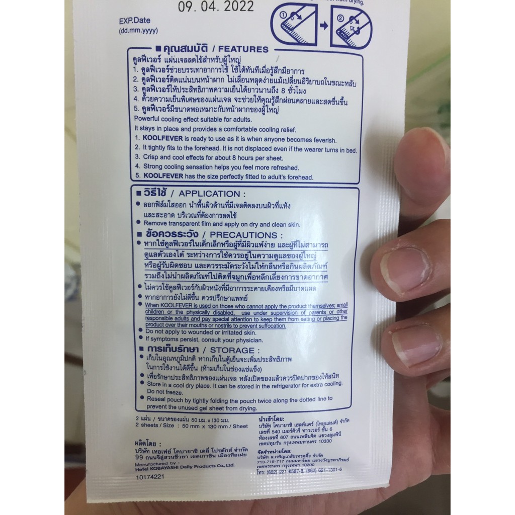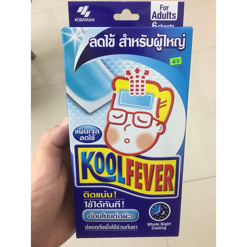 3 กล่อง Kool Fever For Adults 6 แผ่น (3 กล่อง) แผ่นเจลลดไข้ สำหรับผู้ใหญ่ อ่อนโยนต่อผิว กล่องสีน้ำเงิน Koolfever Adult