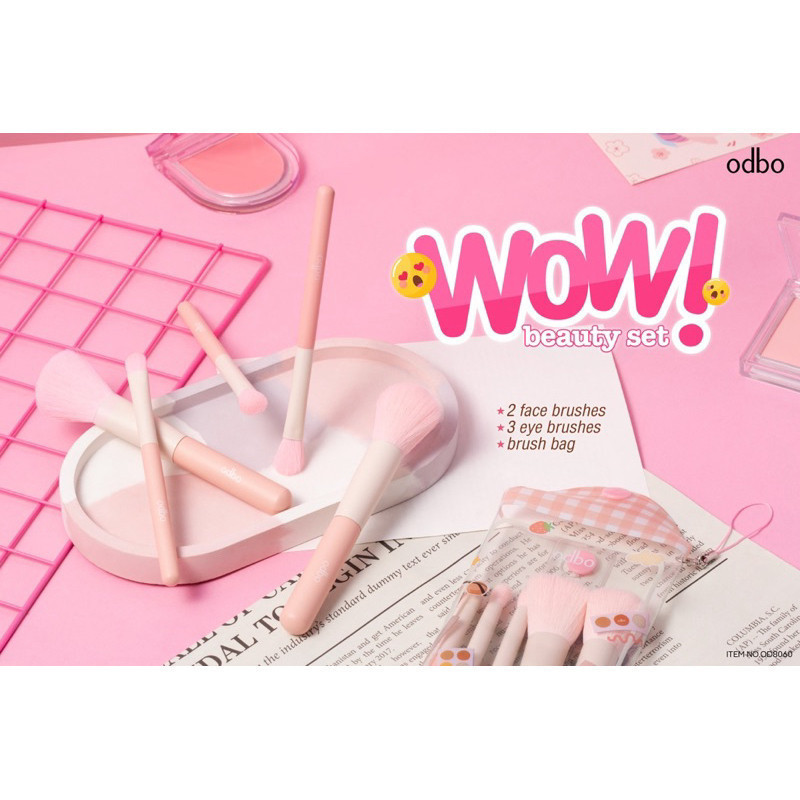🔥แท้/ถูกที่สุด/ไลฟ์ทุกวัน🔥OD8060 ODBO WOW BEAUTY SET โอดีบีโอ ว้าวบิวตี้ เซ็ต แปรง 5 ชิ้น สีพาสเทล พร้อมกระเป๋า ใส่แปรง