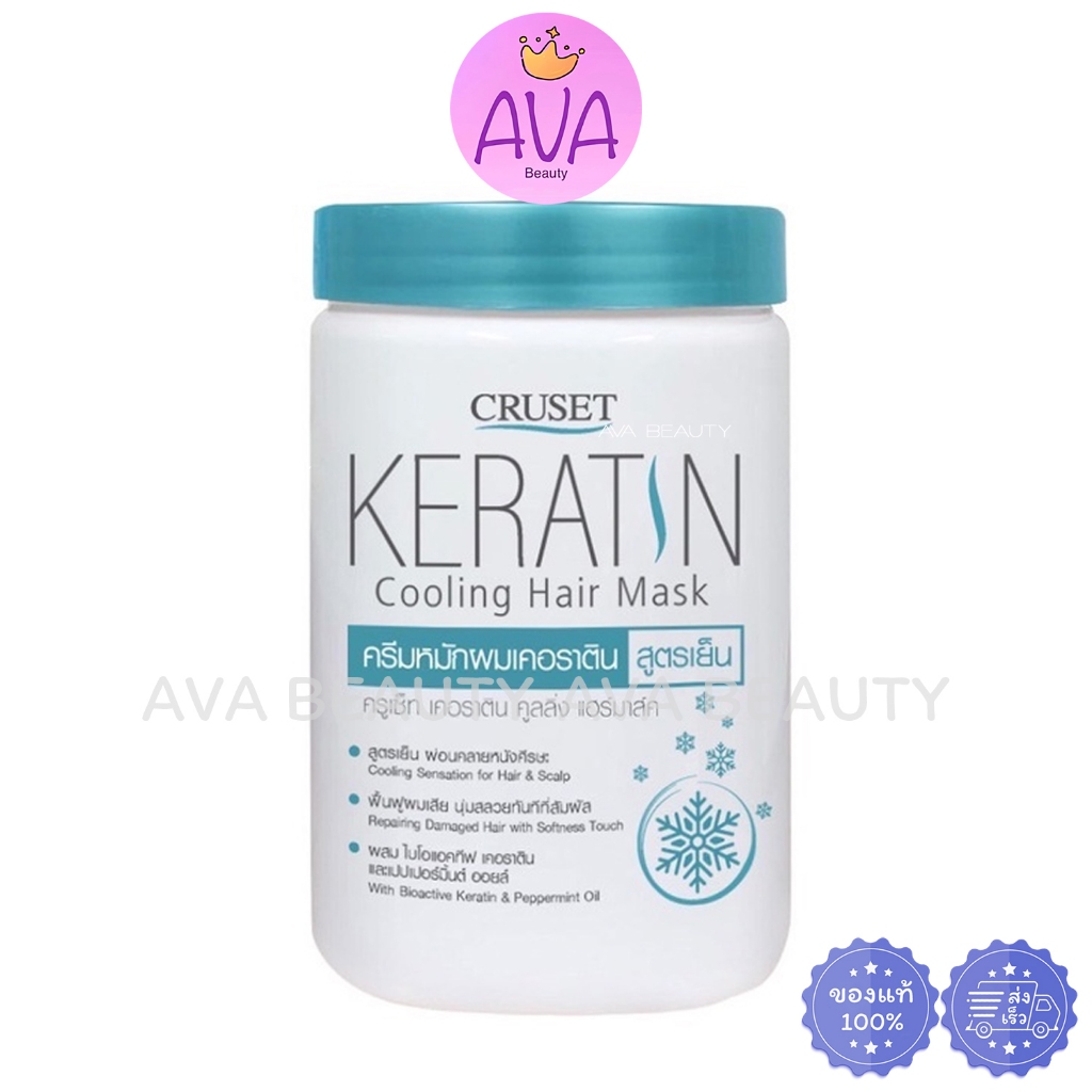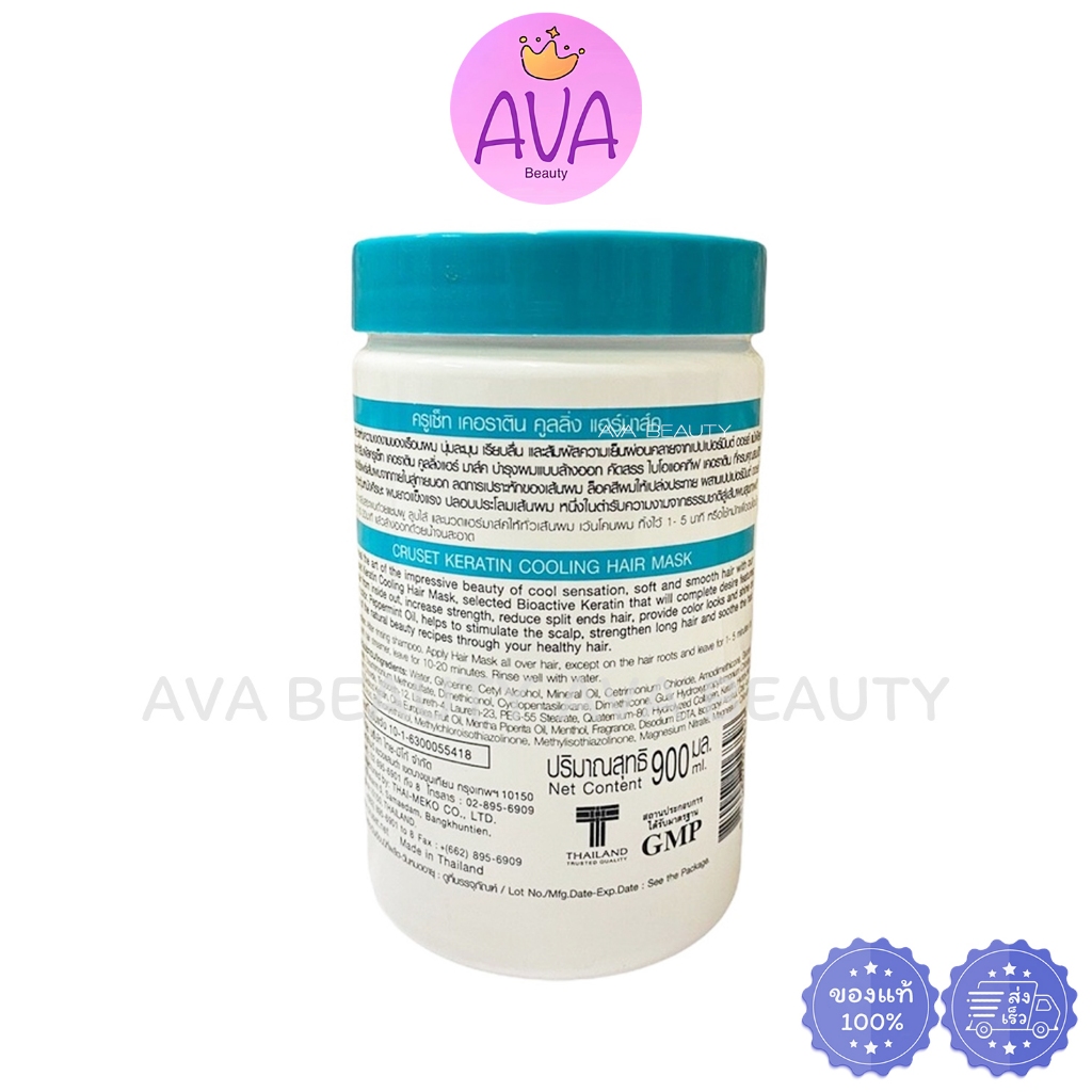 (900ml.) CRUSET ครูเซ็ท เคอราติน คูลลิ่ง แฮร์มาส์ค / มาส์คบำรุงผมสูตรเย็น กระปุกฟ้าขาว (6898)