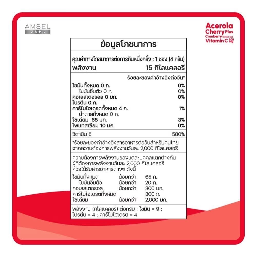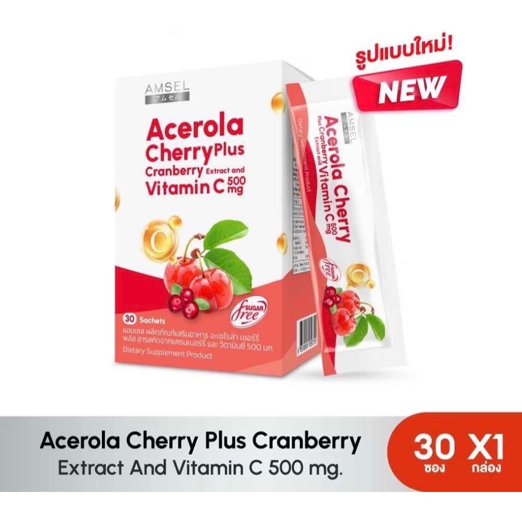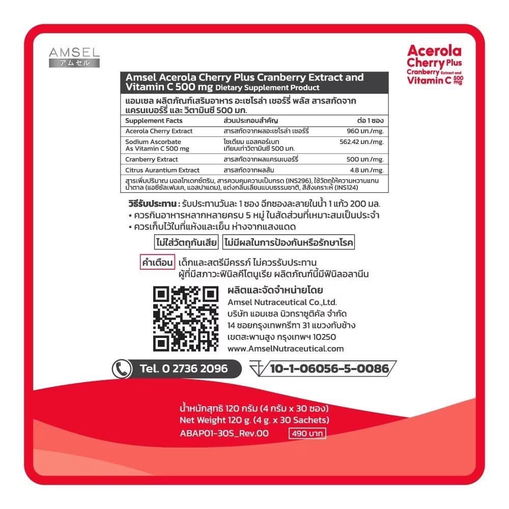 Amsel Acerola Cherry plus Cranberry Extract and Vitamin C 500 mg. (30ซอง)