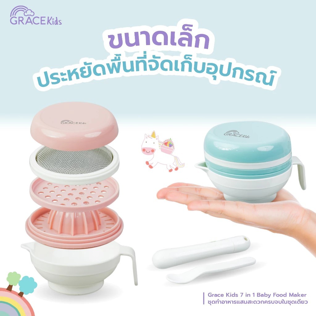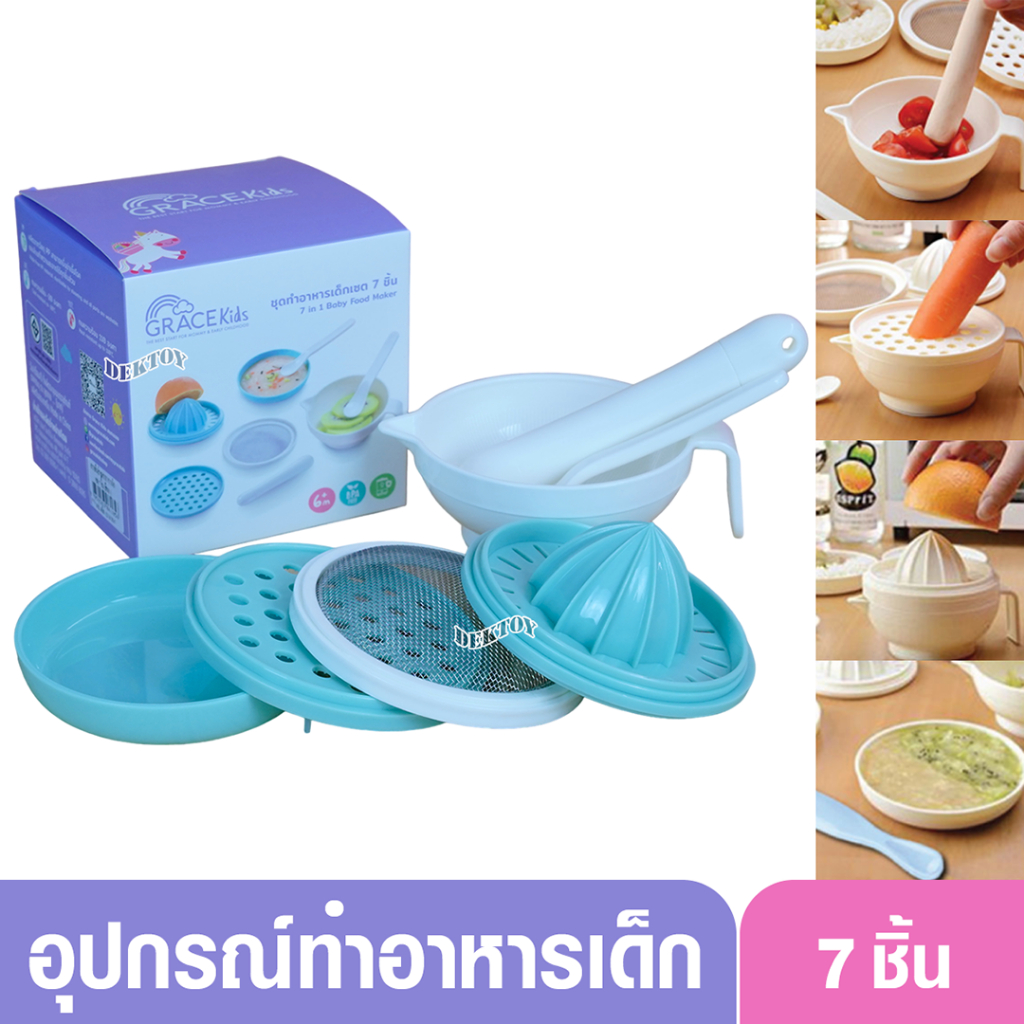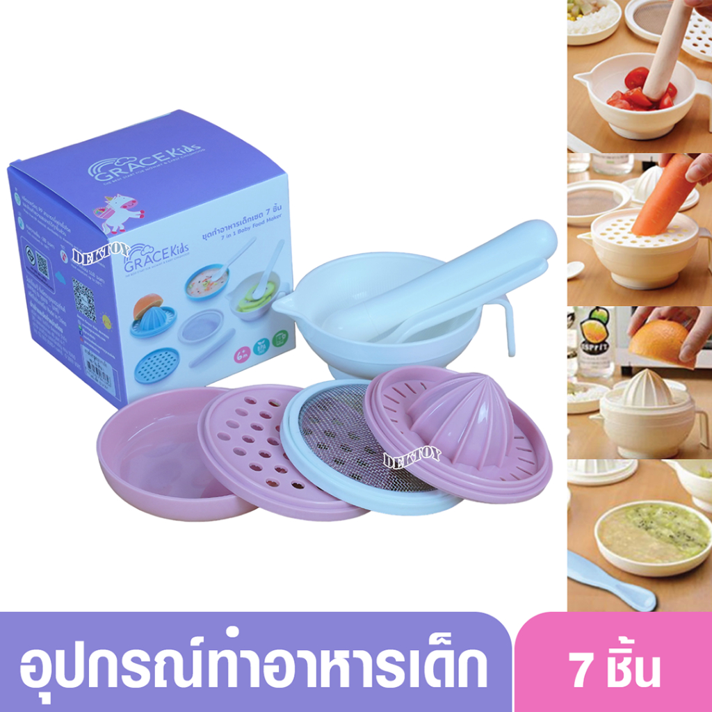 Grace Kids ชุดทำอาหารลูก (ทำอาหารได้ 6 แบบ) การตวง กรอง คั้น ขูด ตำ และบด อุปกรณ์ทำอาหารลูก