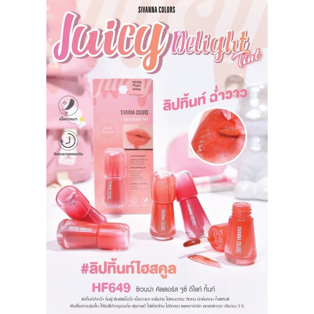 สิวันนา ติ้น จูซี่ ดีไลท์ ทินท์ 3g HF649 ปากฉ่ำ อิ่มฟู Sivanna Colors Juicy Delight Tint