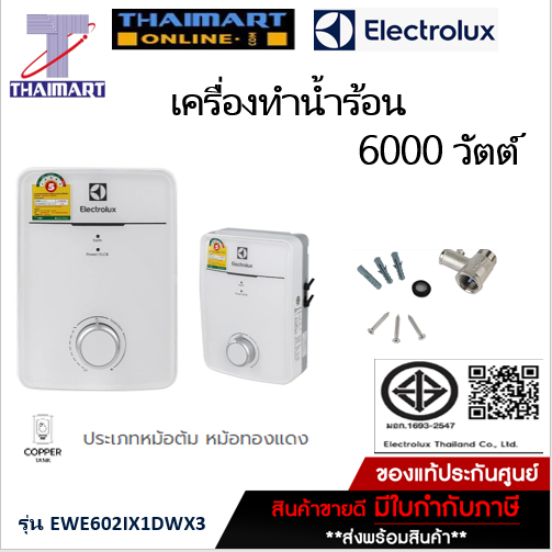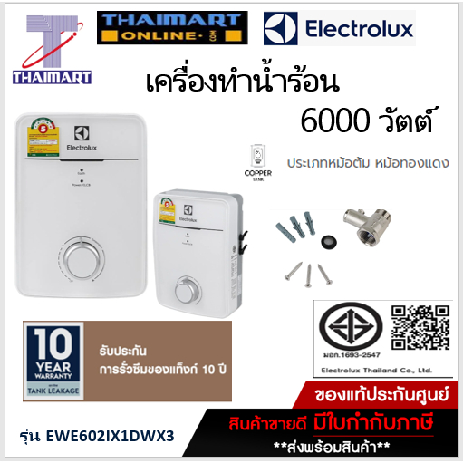 Electrolux เครื่องทำน้ำร้อน (6000วัตต์) รุ่น EWE602IX1DWX3 /Thaimartไทยมาร์ท