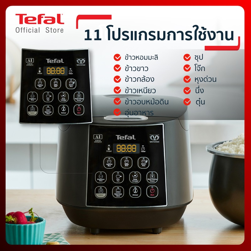 หม้อหุงข้าว DIGITAL TEFAL RK736B66 1.80 ลิตร หม้อ หม้อดิจิตอล AI มีโปรแกรม 11 เมนู