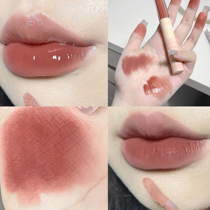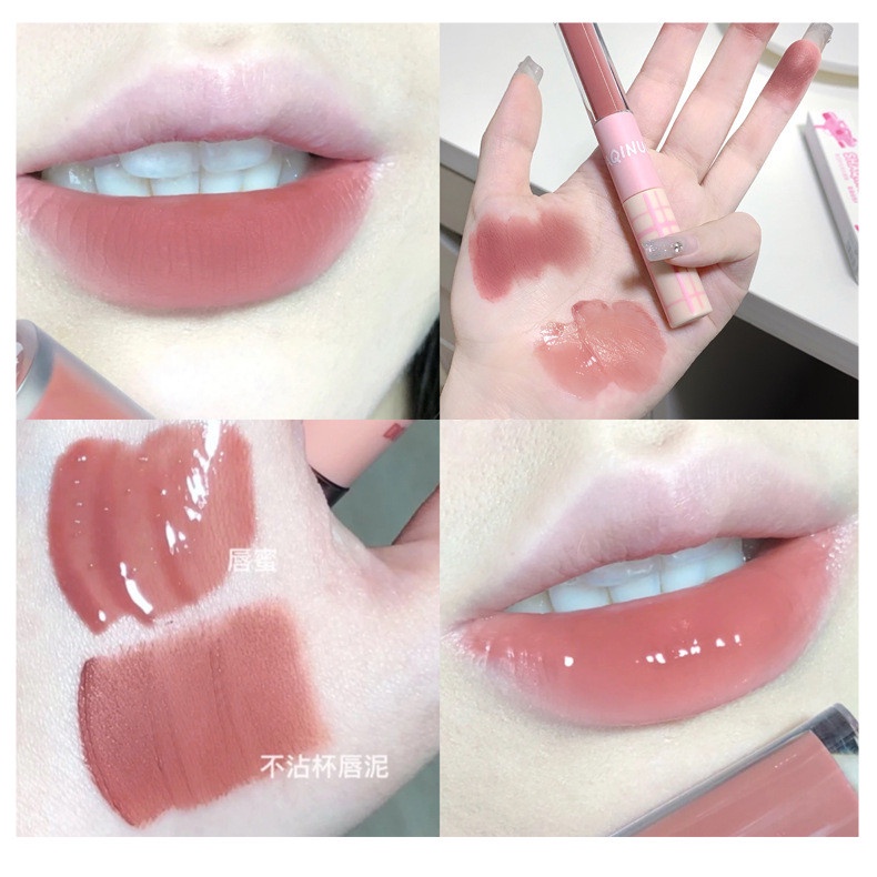 ลิปสติก เคลือบริมฝีปาก สองหัว เนื้อแมตต์ พร้อมกระจก ลิปกลอส สีติดทนนาน กันน้ํา 2 สี YUE