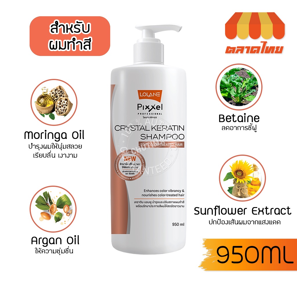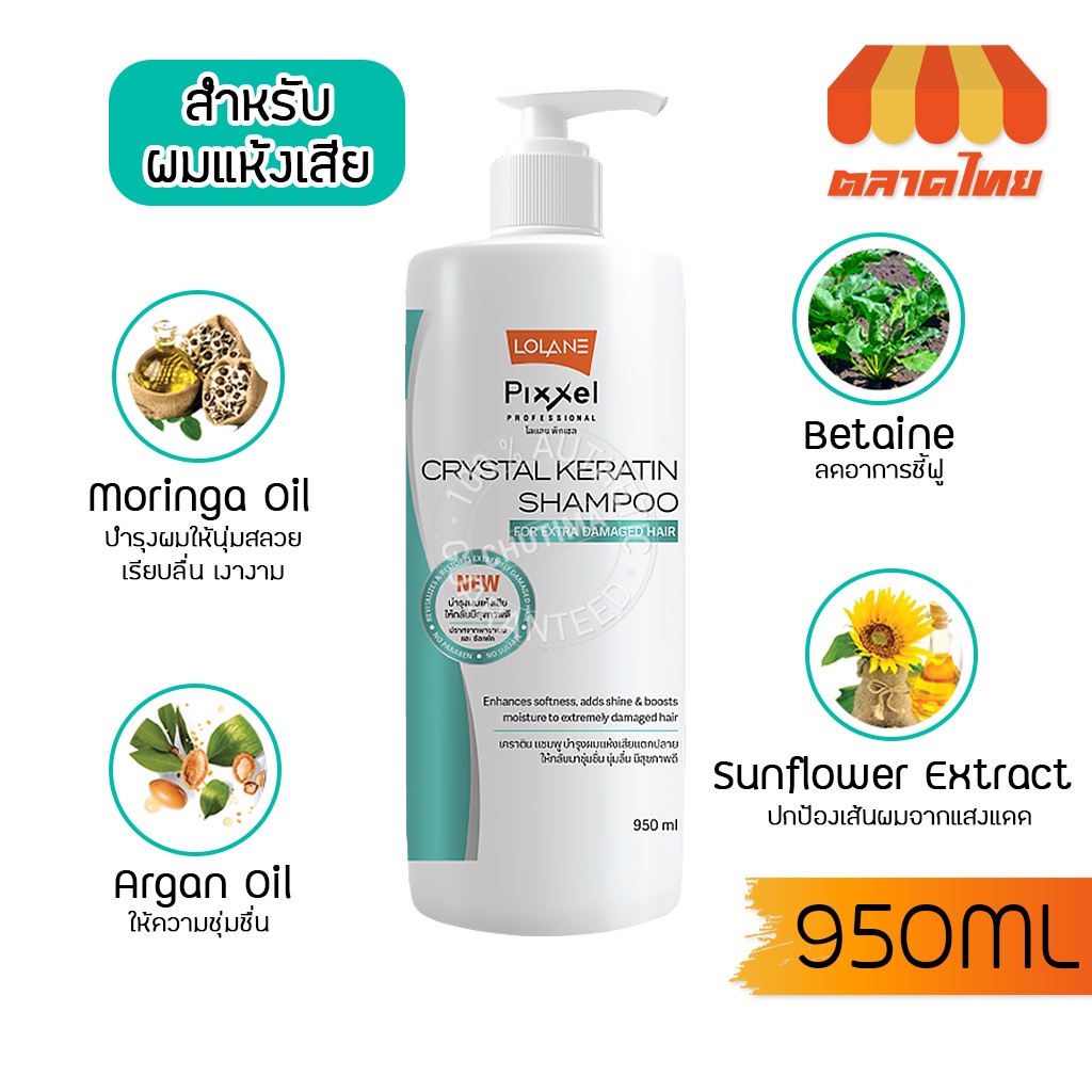 แชมพู โลแลน พิกเซล คริสตัล เคราติน สำหรับผมแห้งเสีย / ผมทำสี Lolane Pixxel Crystal Keratin Shampoo 950 ml.
