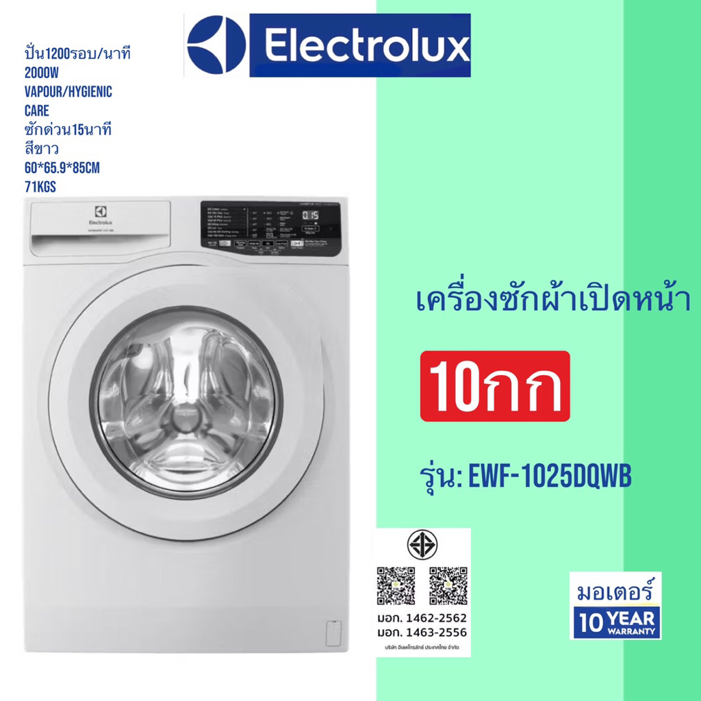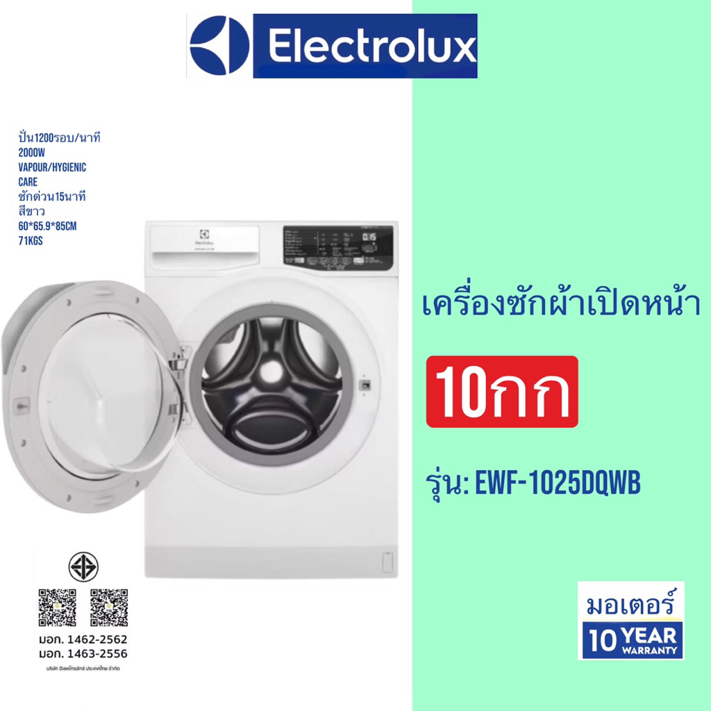 Electrolux เครื่องซักผ้าฝาหน้า 10 KG. รุ่น EWF1025DQWB