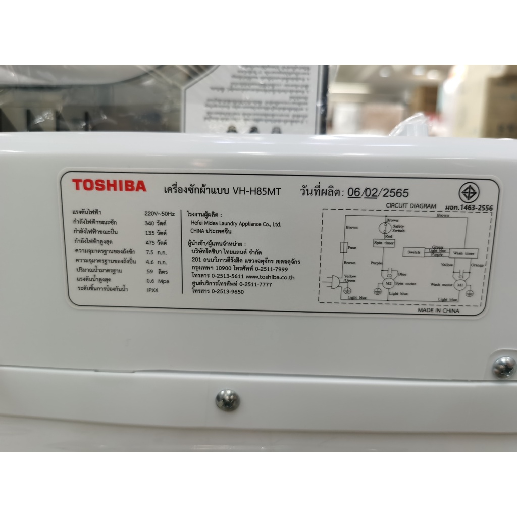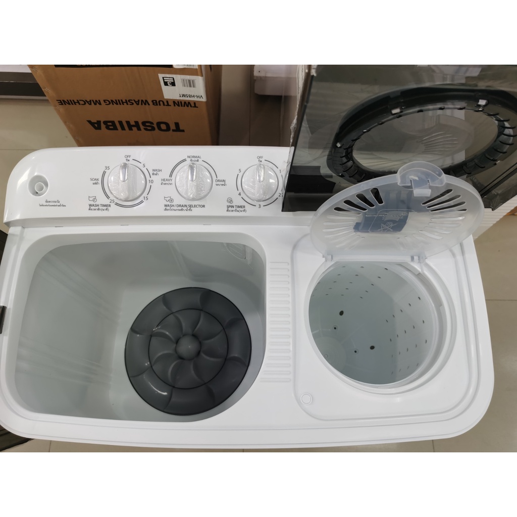 TOSHIBA เครื่องซักผ้า 2 ถังฝาบน รุ่น VH-H85MT ขนาดถังซัก 7.5 KG ปั่น 4.6 KG ตัวถังปลอดสนิม รับประกันสินค้า 2 ปี มอเตอร์